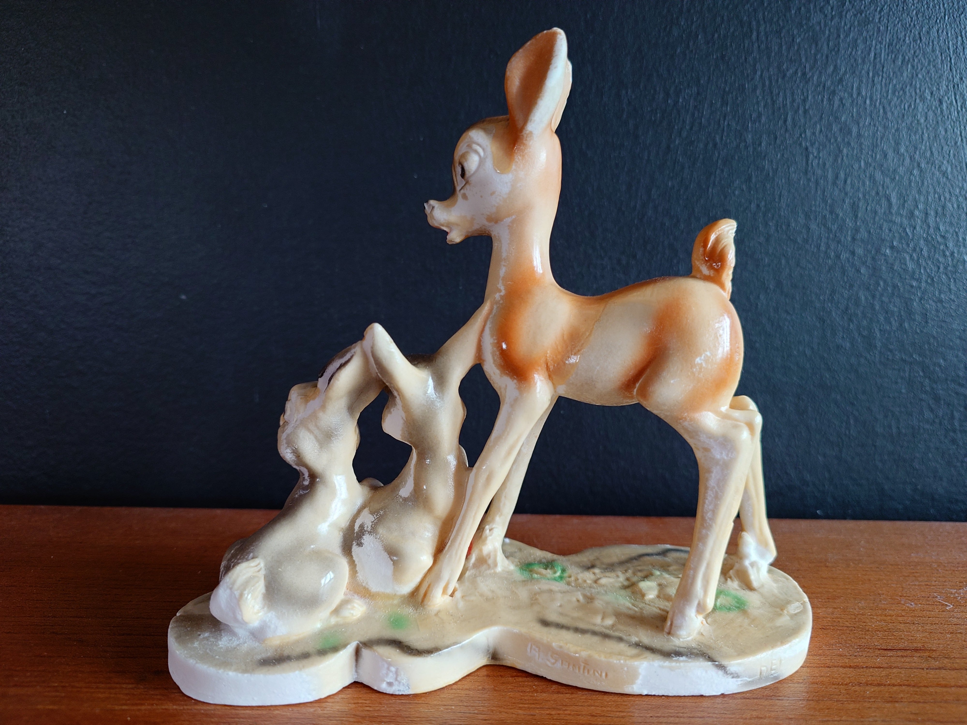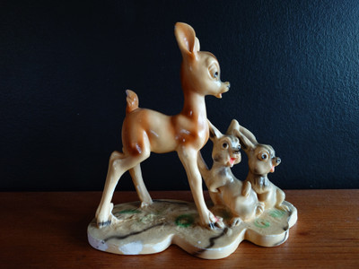 Bambin hännästä ja korvasta on lohjennut pikkuinen pala. Pientä kulumaa.
