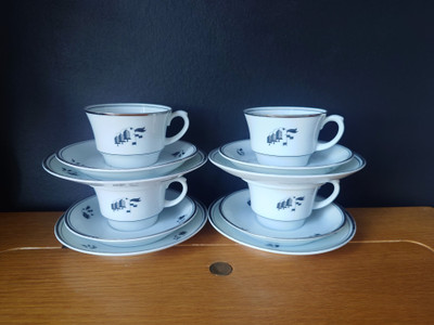 Setissä on 4 x kuppi, tassi ja pullalautanen.