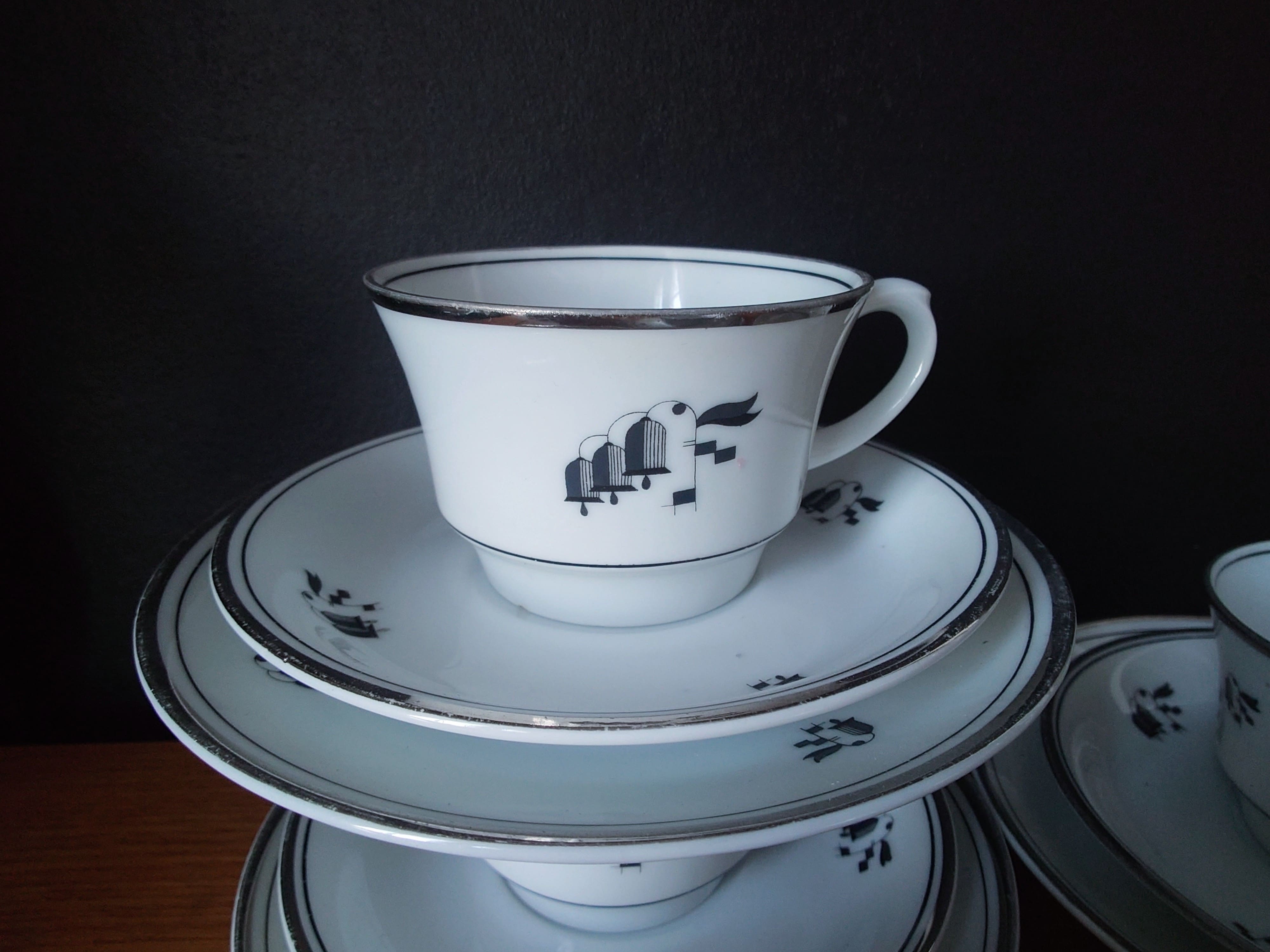 Hopeakello kahvikupit 1930-1940 luvulta. Piippuleima.