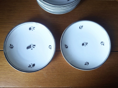 Hyväkuntoiset ja ehjät. Hopeareunuksissa on hieman kulumaa paikoittain.