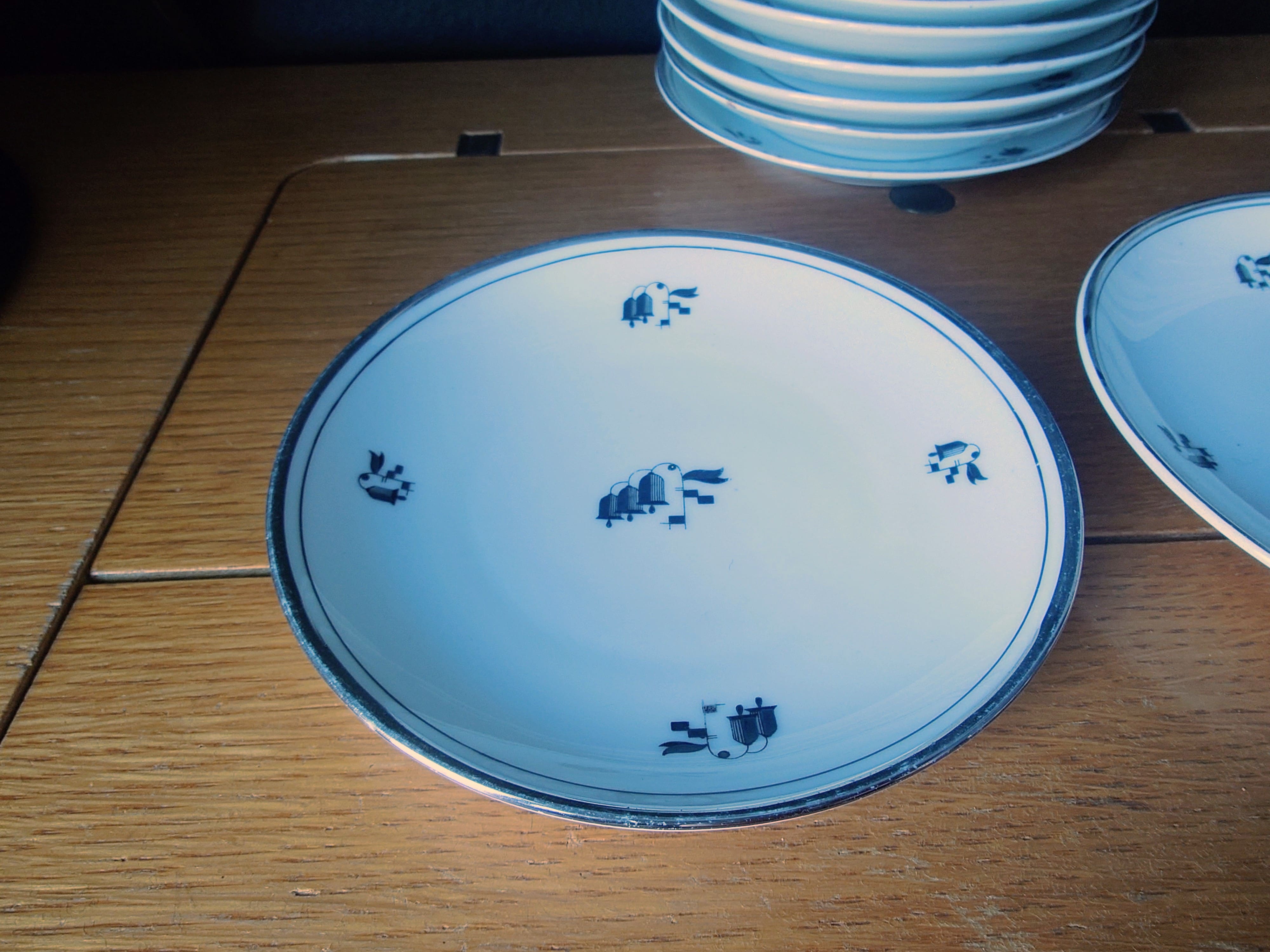 Hopeakello leipälautaset 1930-1940 luvulta. Piippuleima.