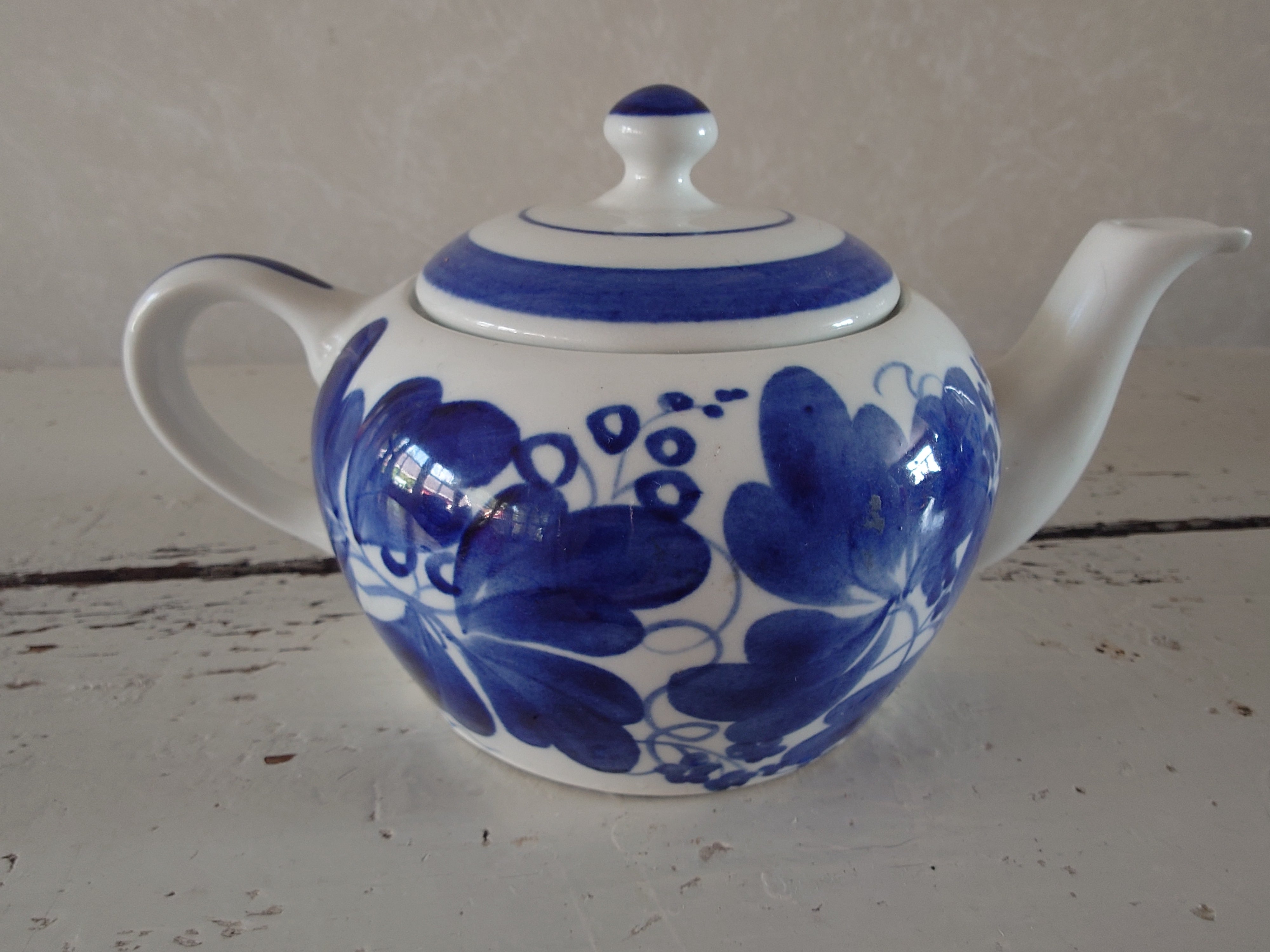 Pieni teepannu sinistä sarjaa 1960-luvulta.