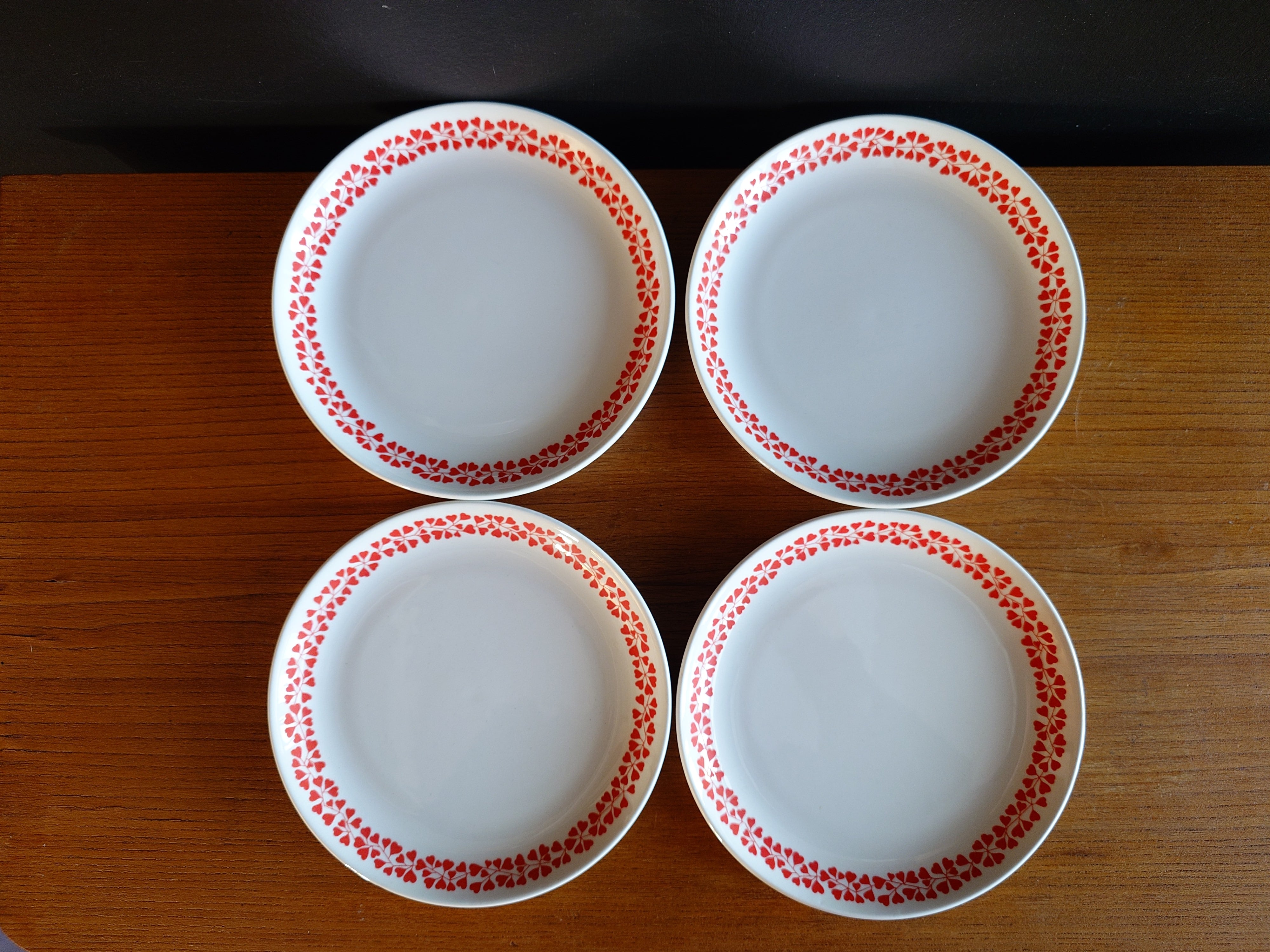 Design Raija Uosikkinen, 1970-luku. Leipälautanen, joissa on punainen koriste.