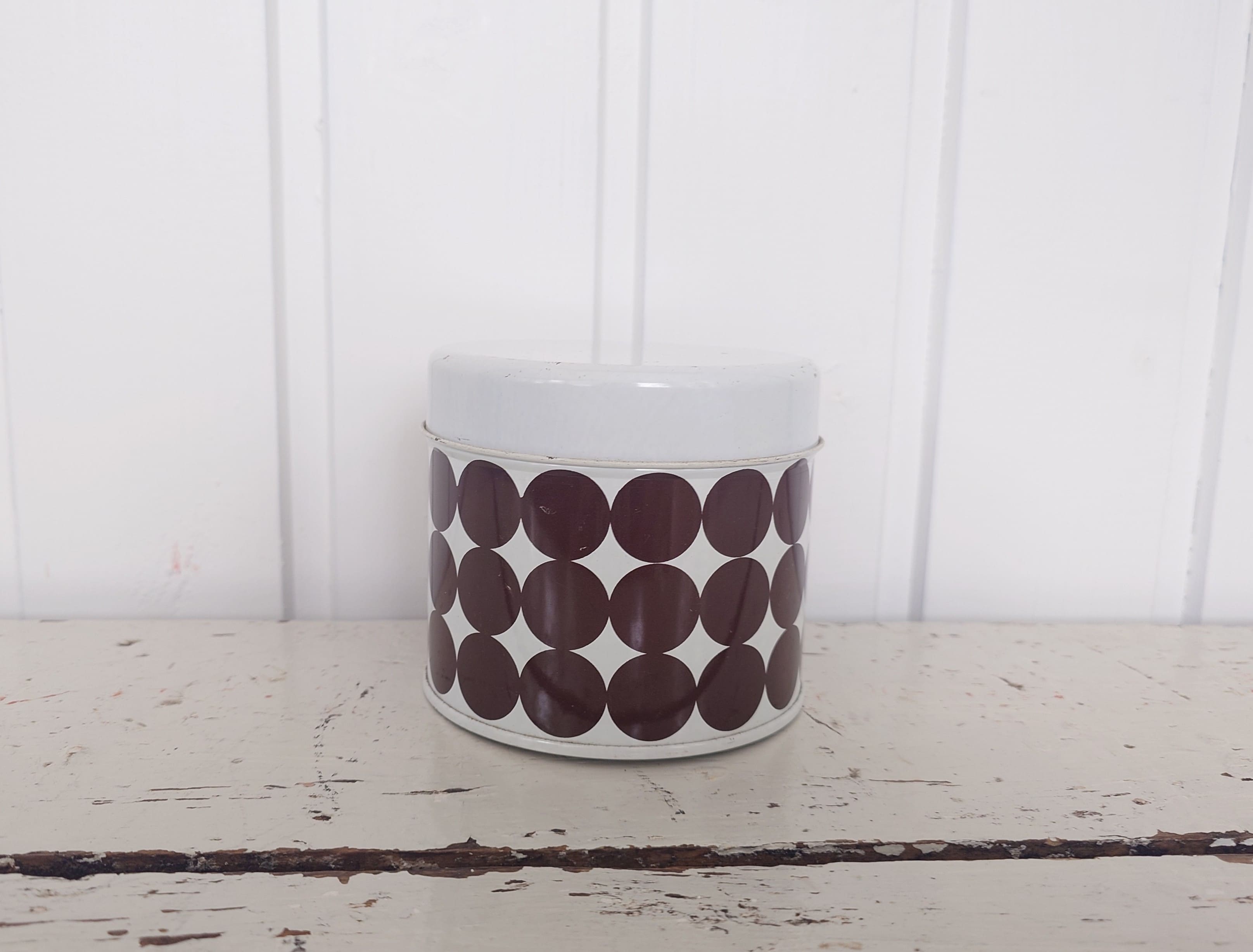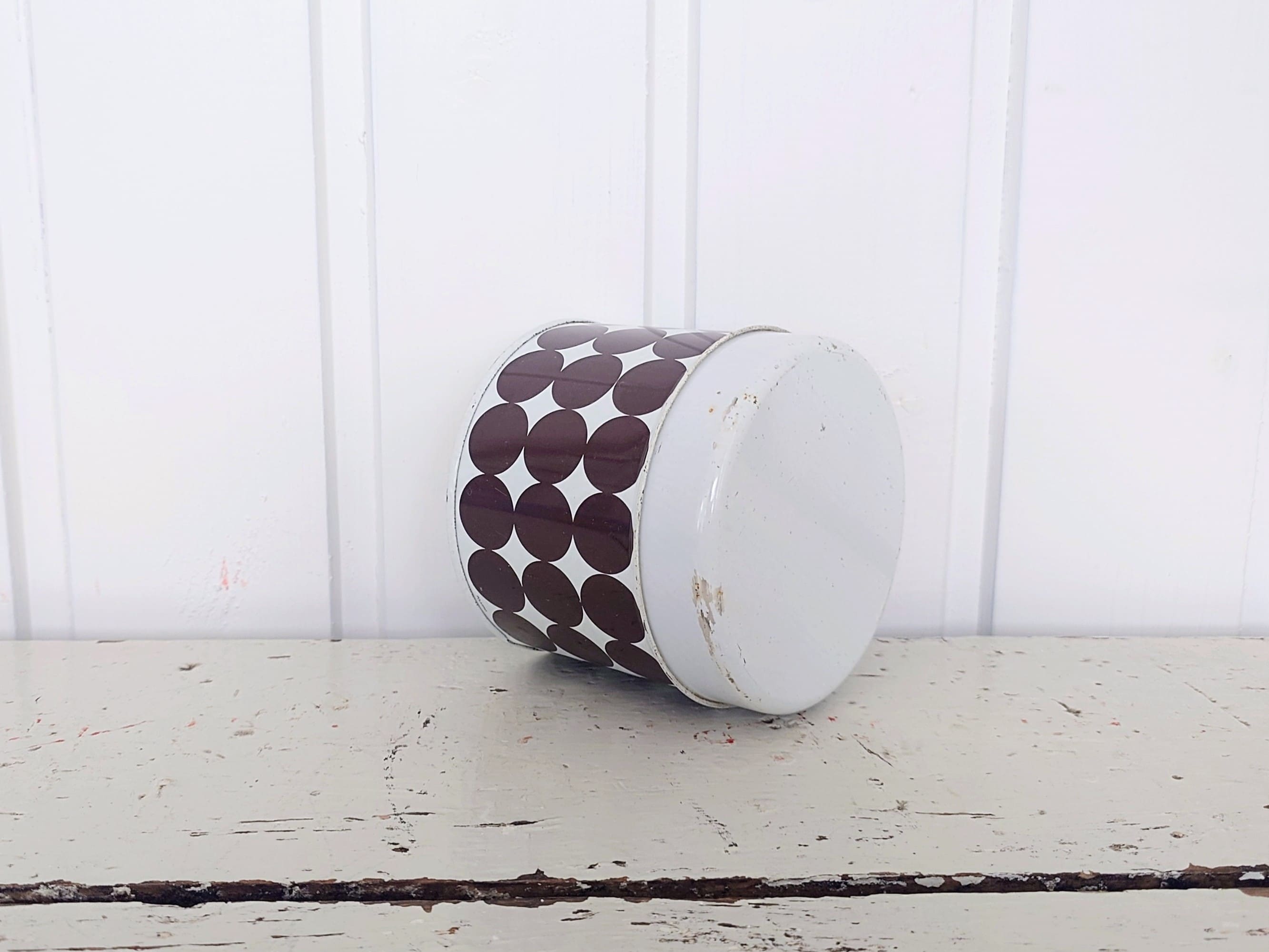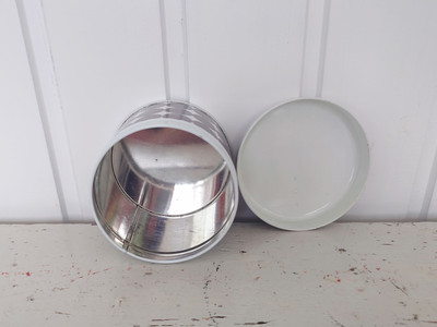 Purkki on siistikuntoinen, pieniä jälkiä. Kannen reunoissa enemmän raapuja.