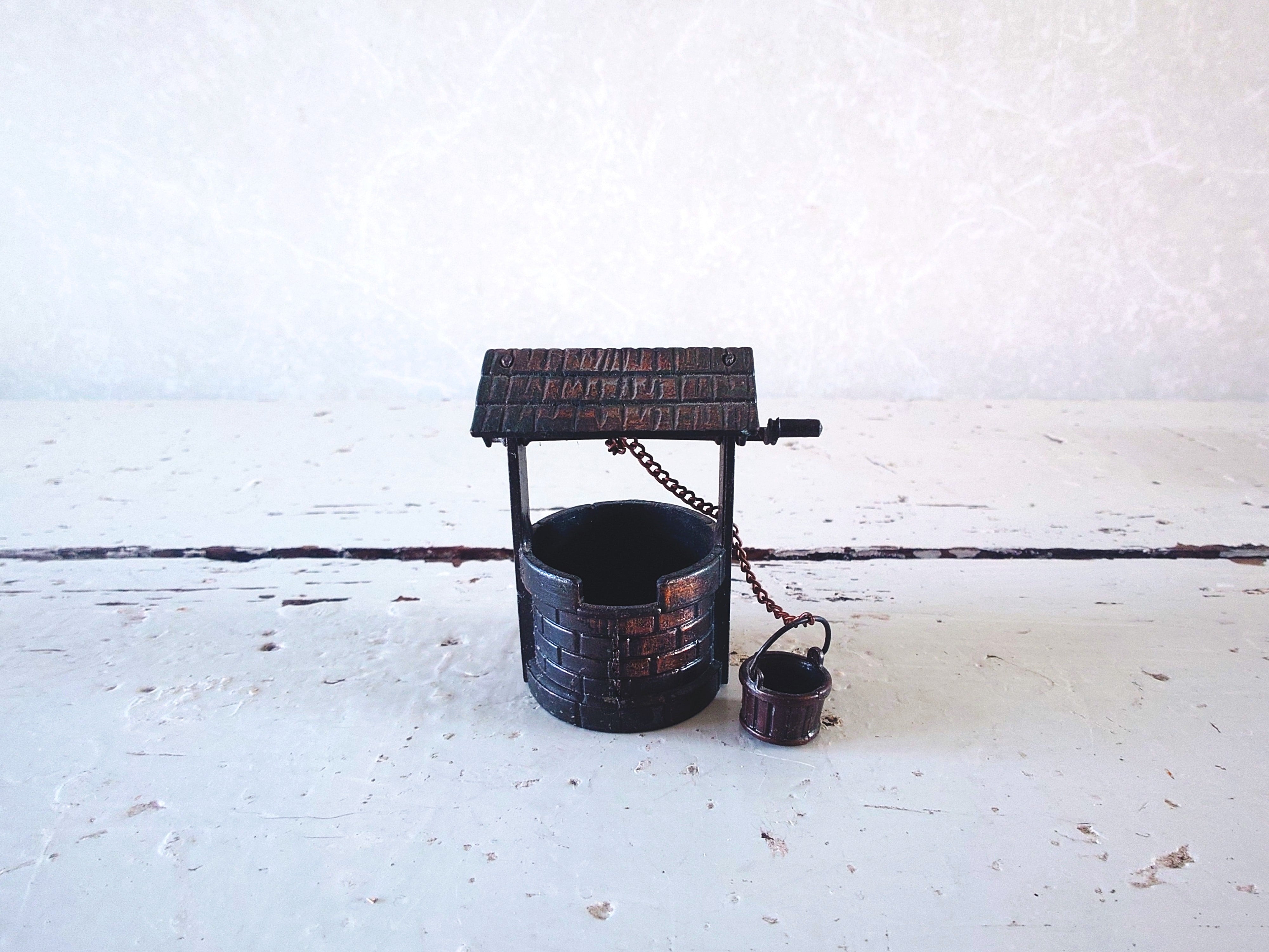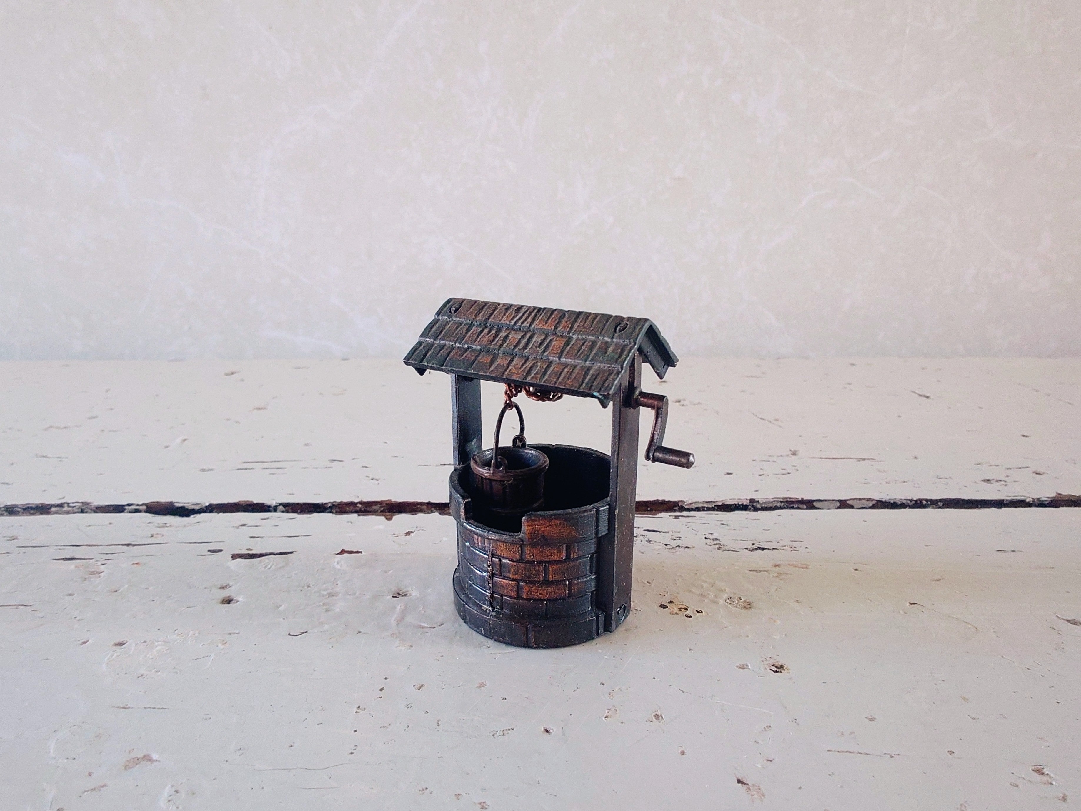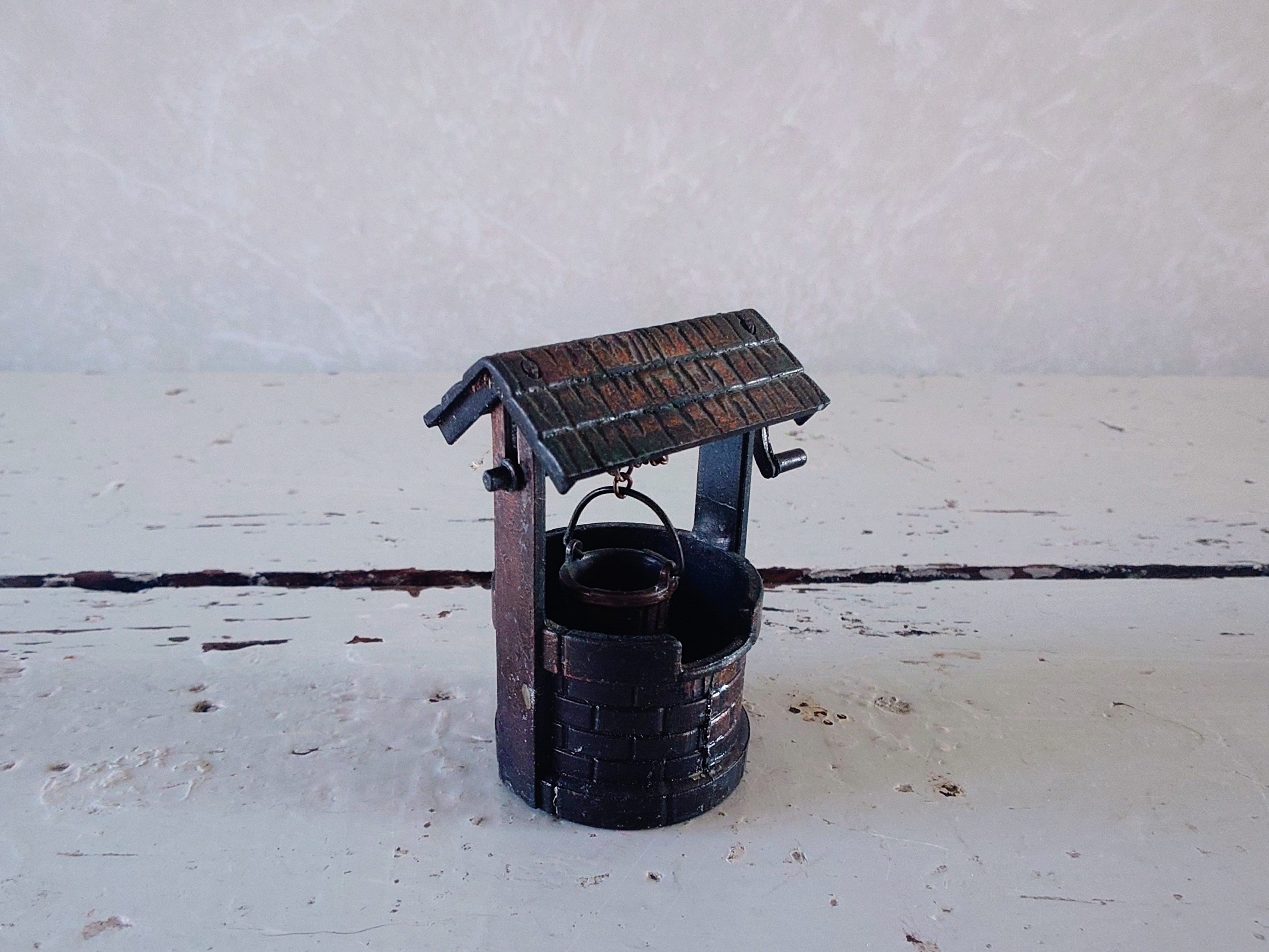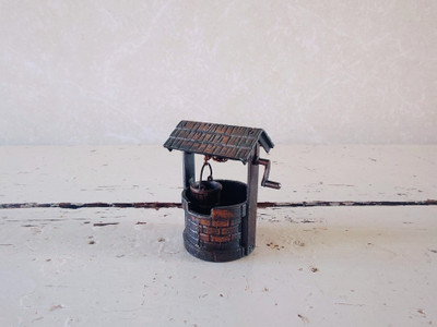 Vanha miniatyyri toivomuskaivo metallia vuodelta 1976.