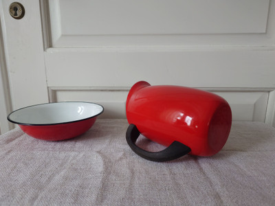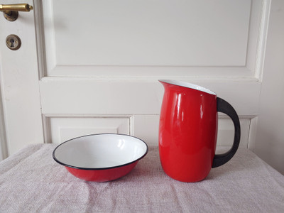 Vanha Finelin punainen emalikaadin on saanut kaverikseen punaisen puolalaisen emalivadin.