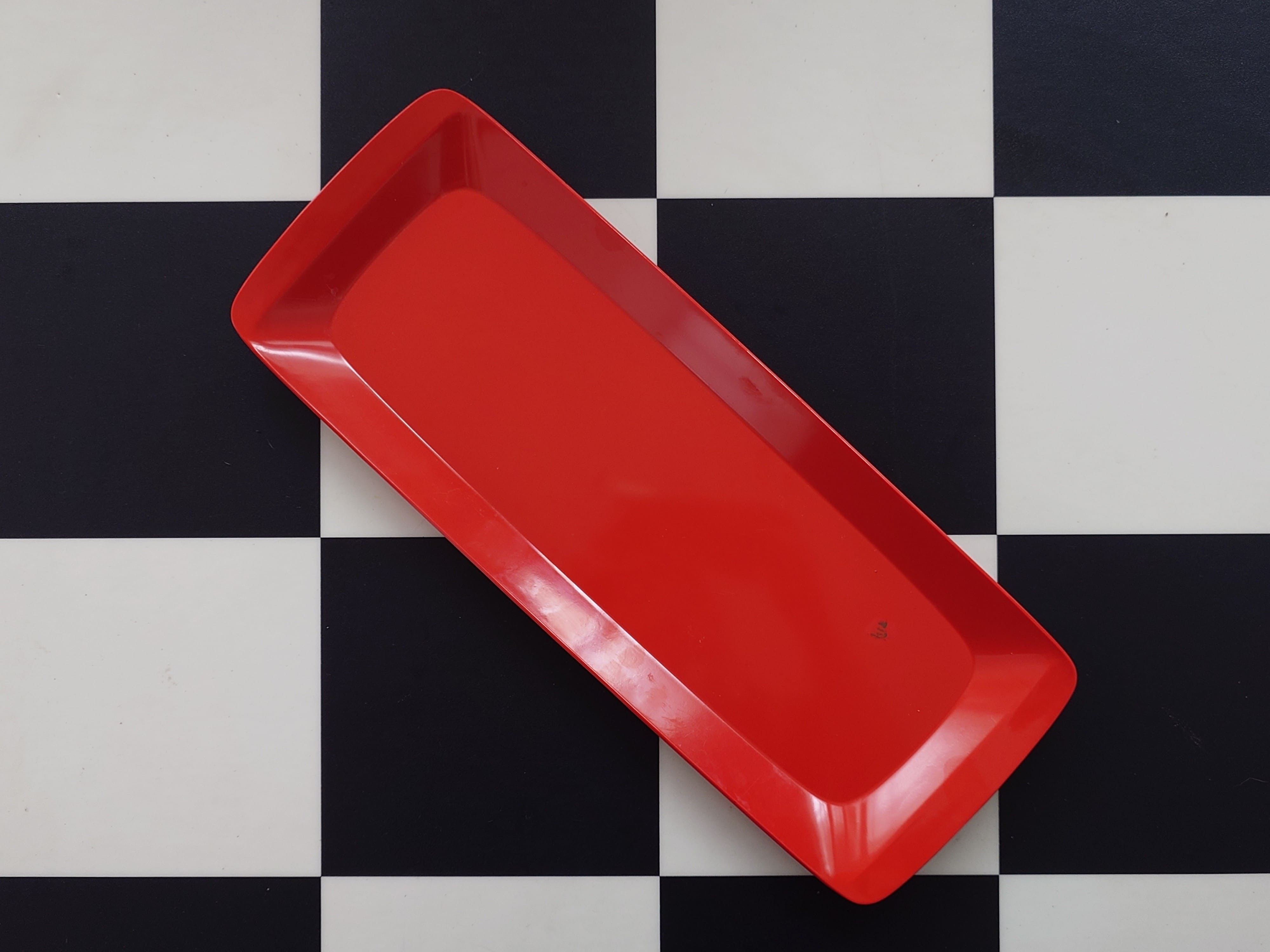 Pitkulainen tarjotin sopii myös tarjoiluastiaksi.