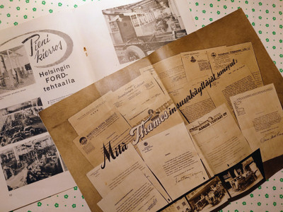Kaksi vanhaa Ford lehteä.