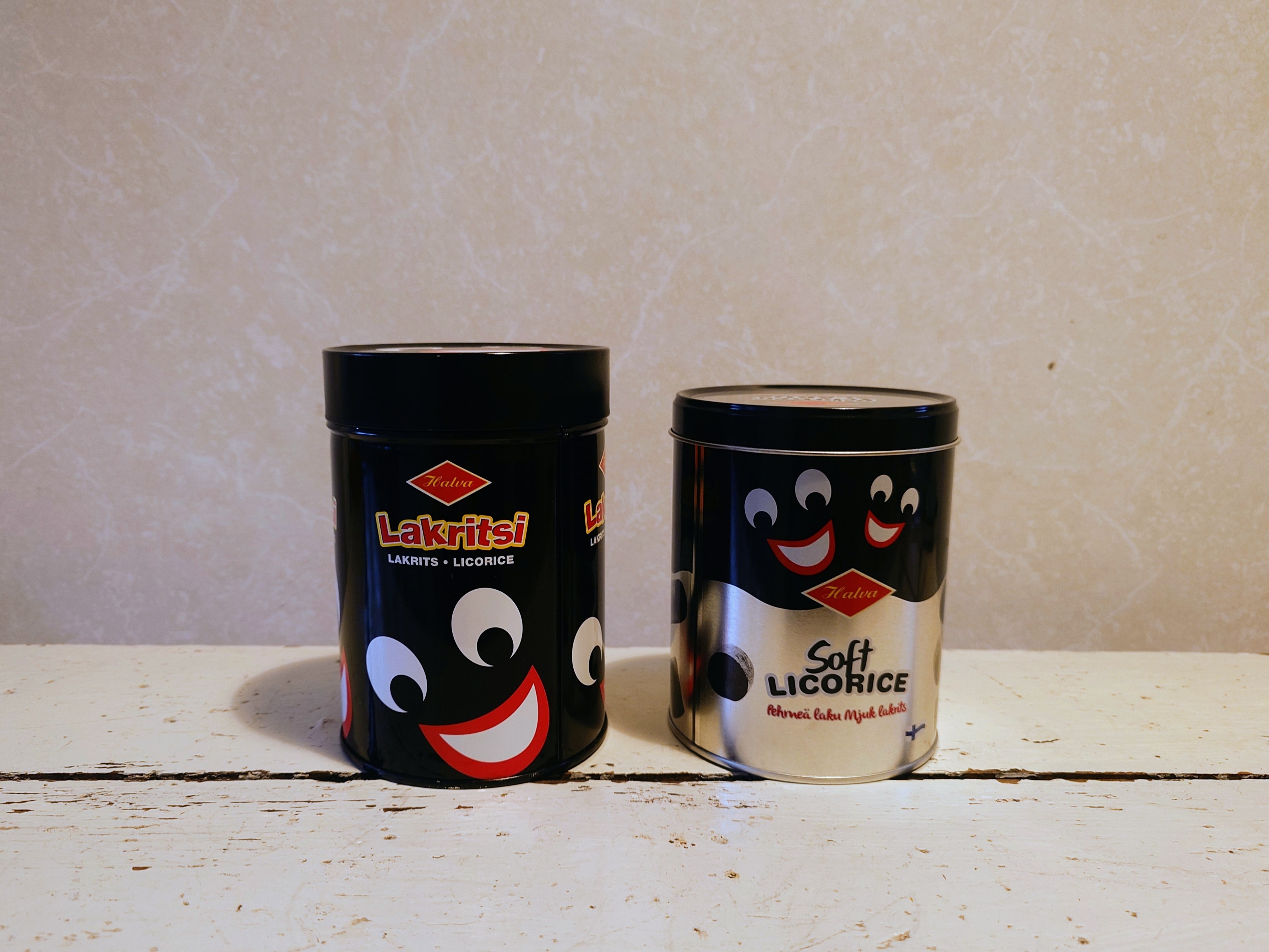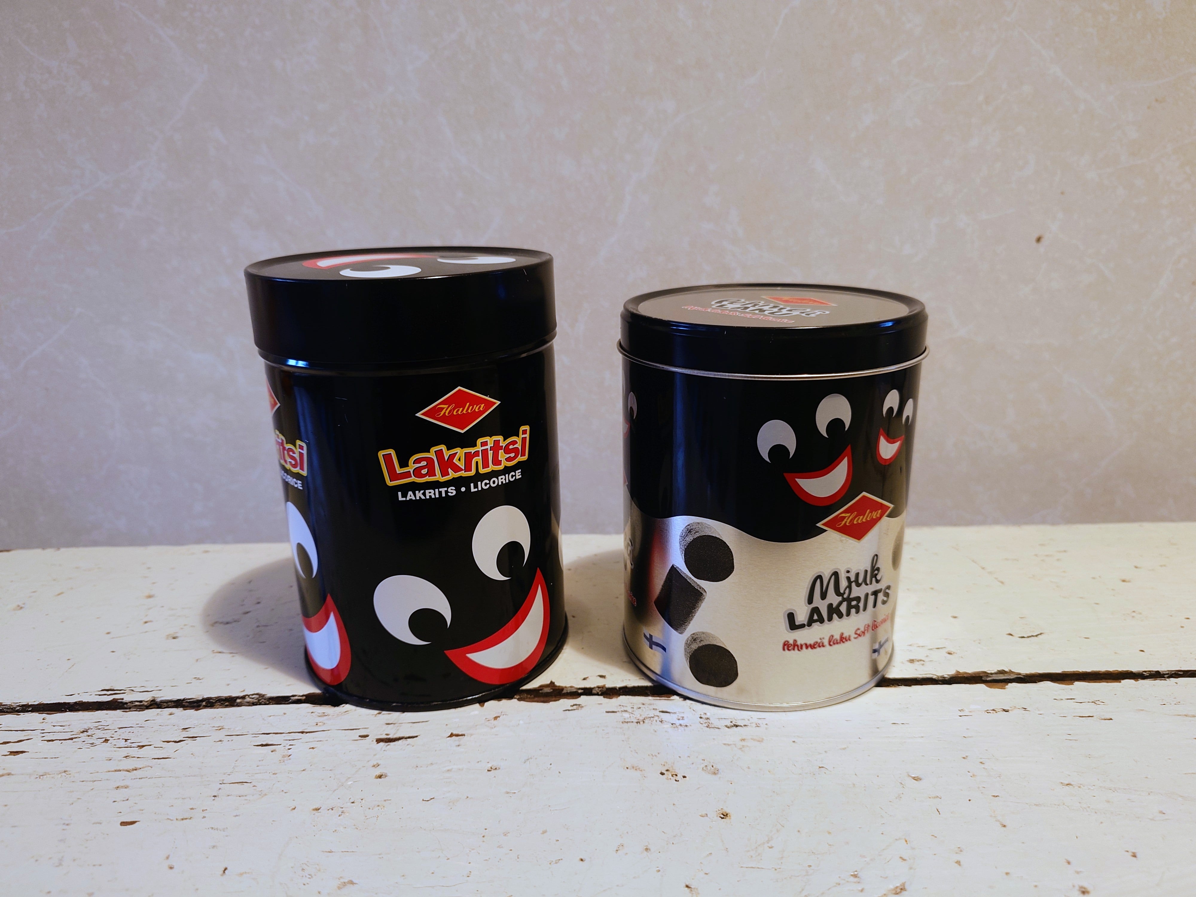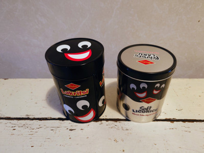 Lakritsi vintage musta peltipurkki vuodelta 2006.