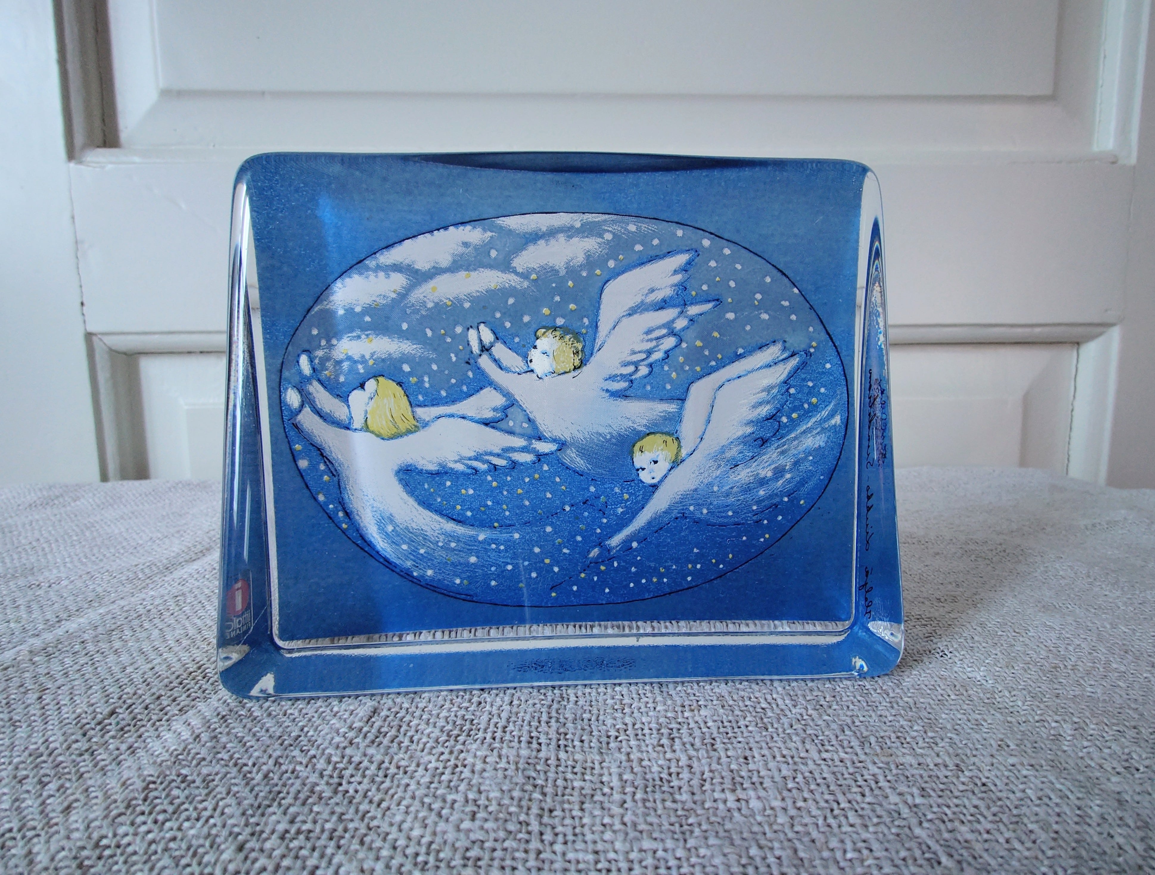 Kaunis lasinen enkelikoriste. Signeeraus laidassa ja Iittala tarra.