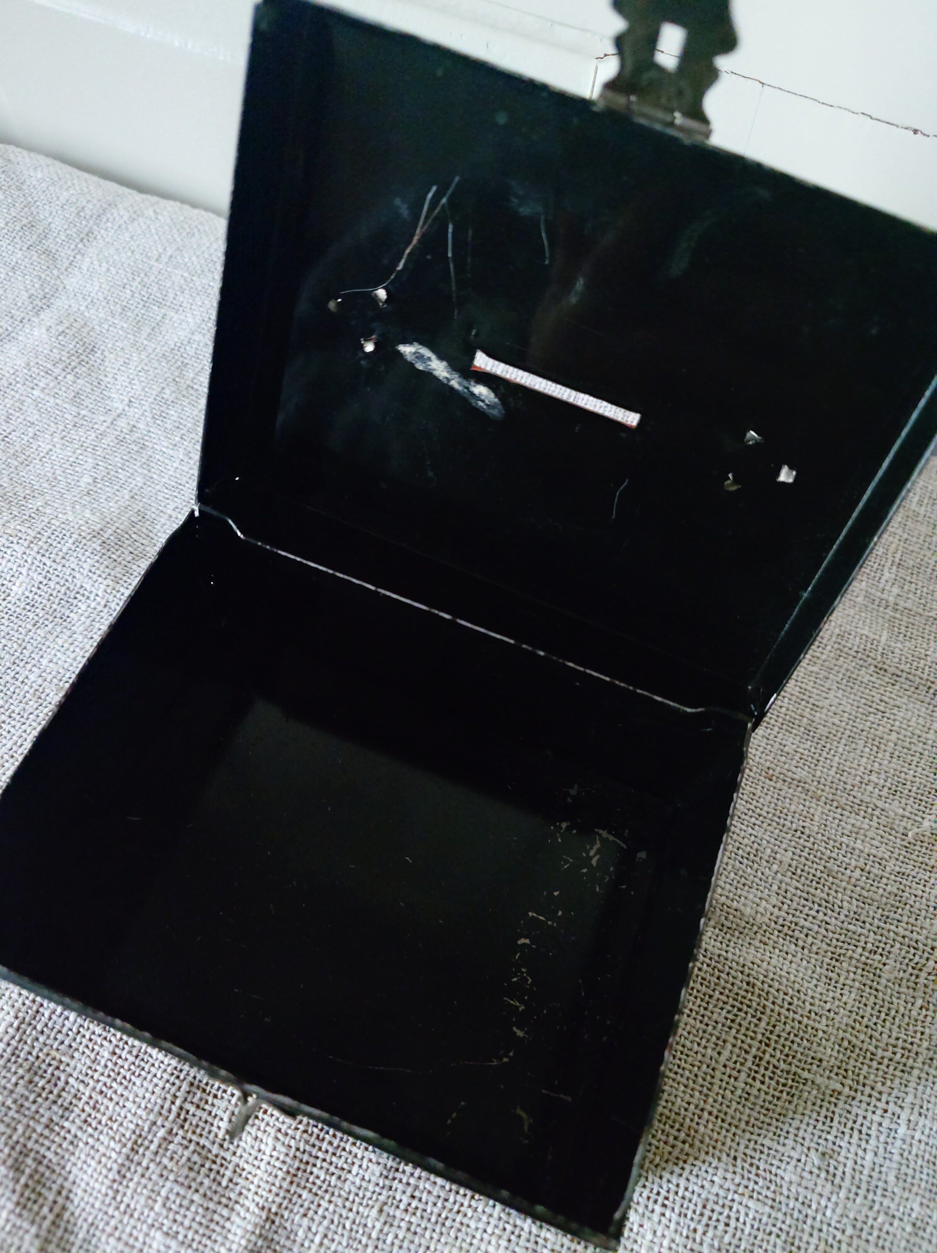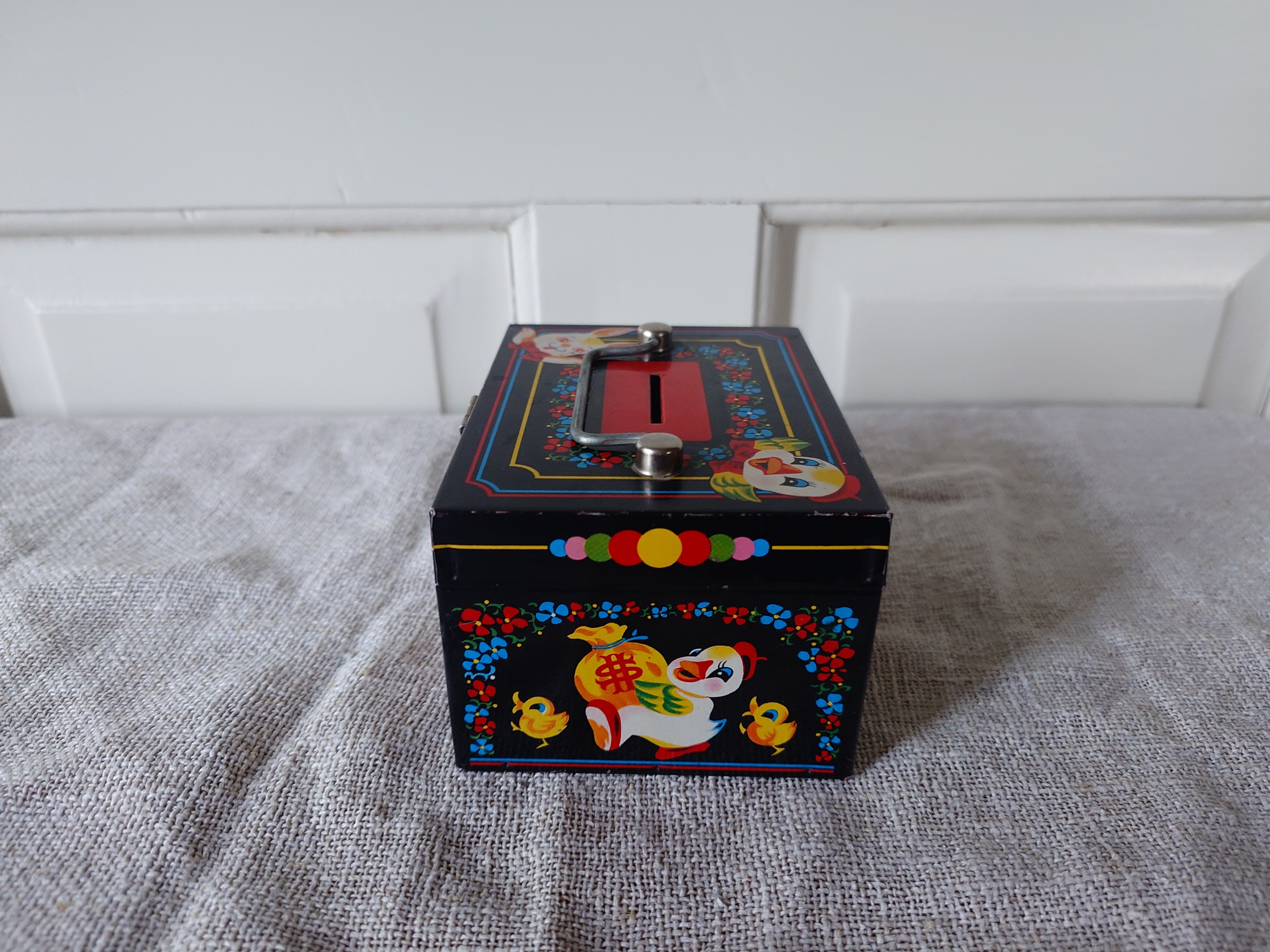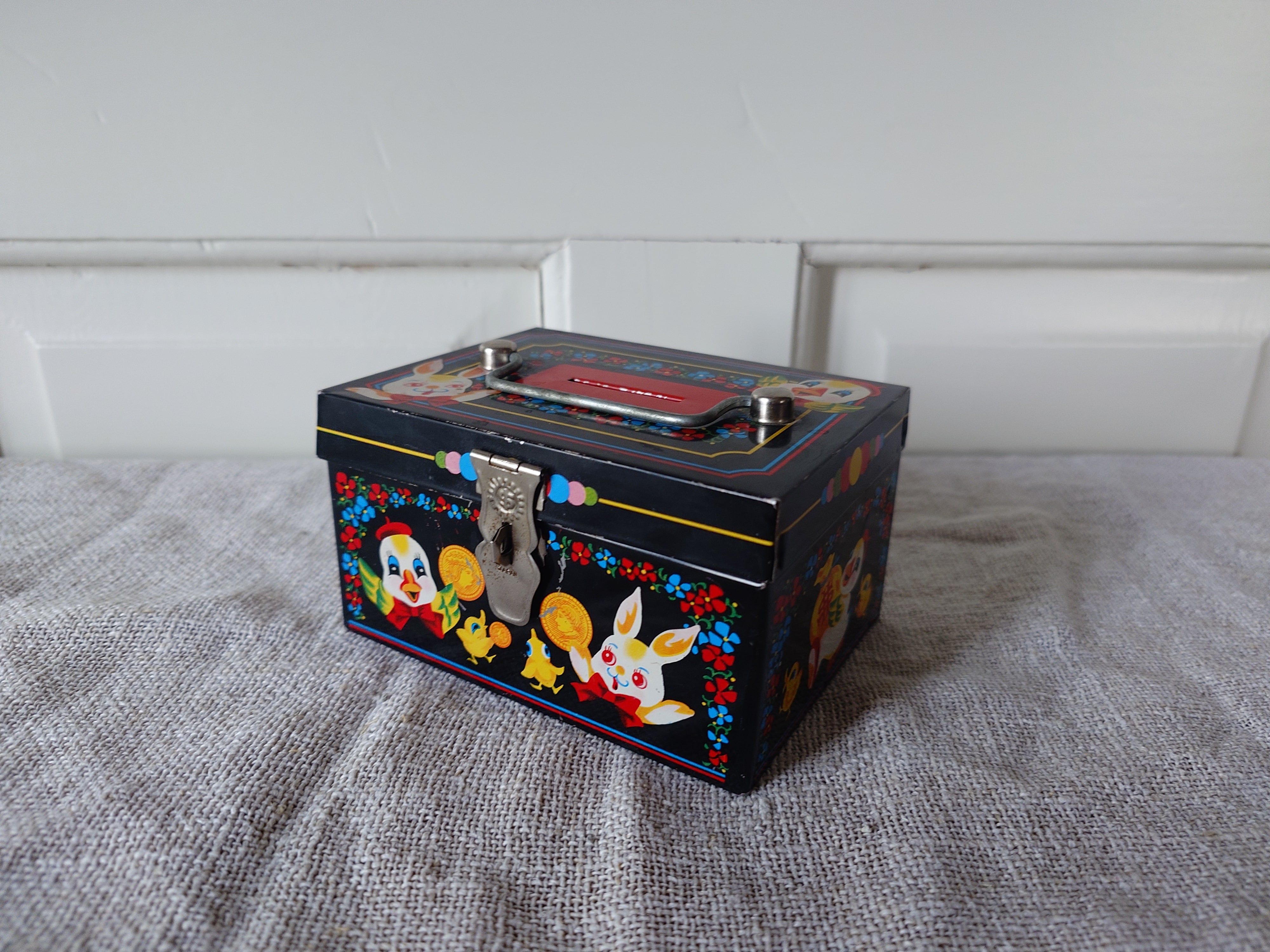 Hieno vanha säästölipas peltiä.