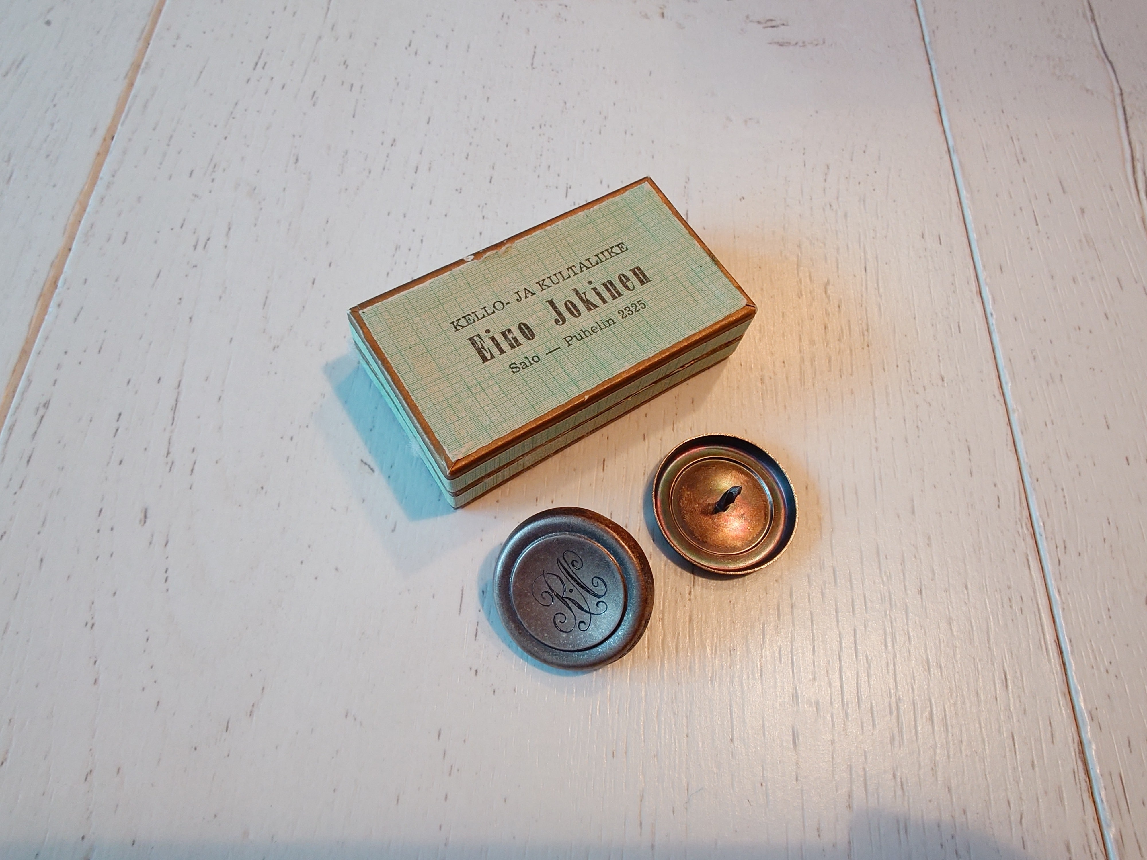 Alkuperäinen laatikko Kello- ja kultaliike Eino Jokinen Salo.