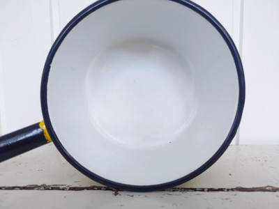 Hyväkuntoinen ja siisti. Sisällä musta piste / jälki emalipinnassa. Joitain pieniä käytön jälkiä.