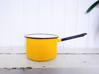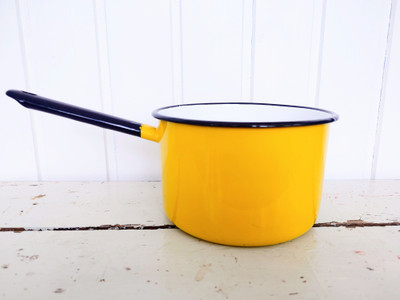 Kaunis kirkkaankeltainen kasari. Musta kahva ja reunat. Made in Poland.