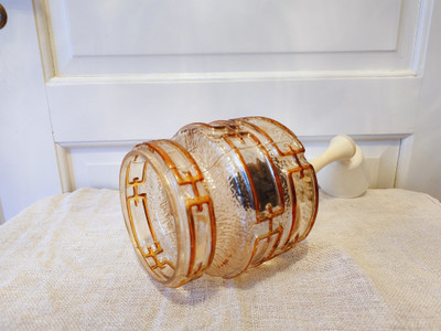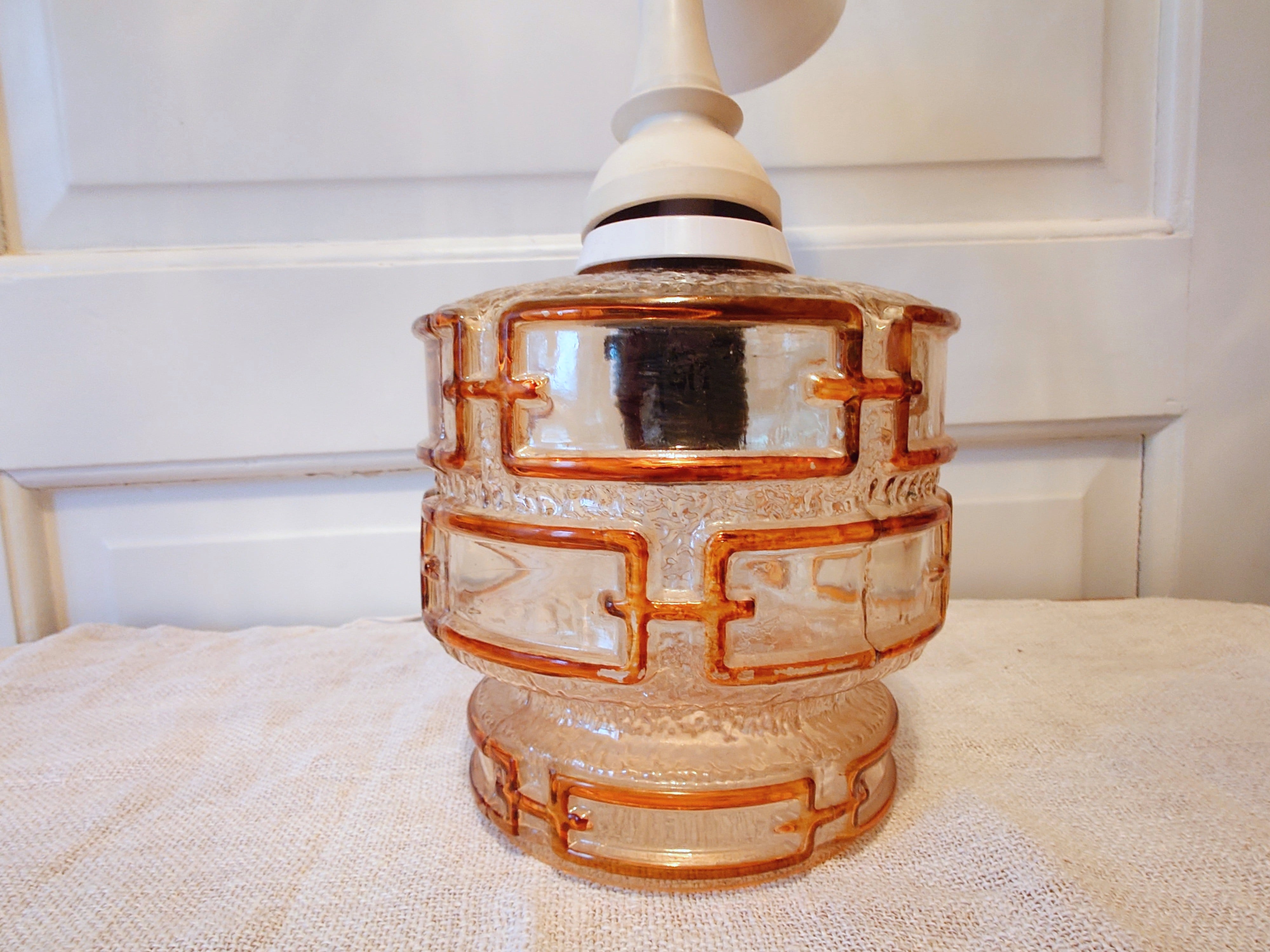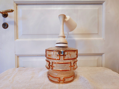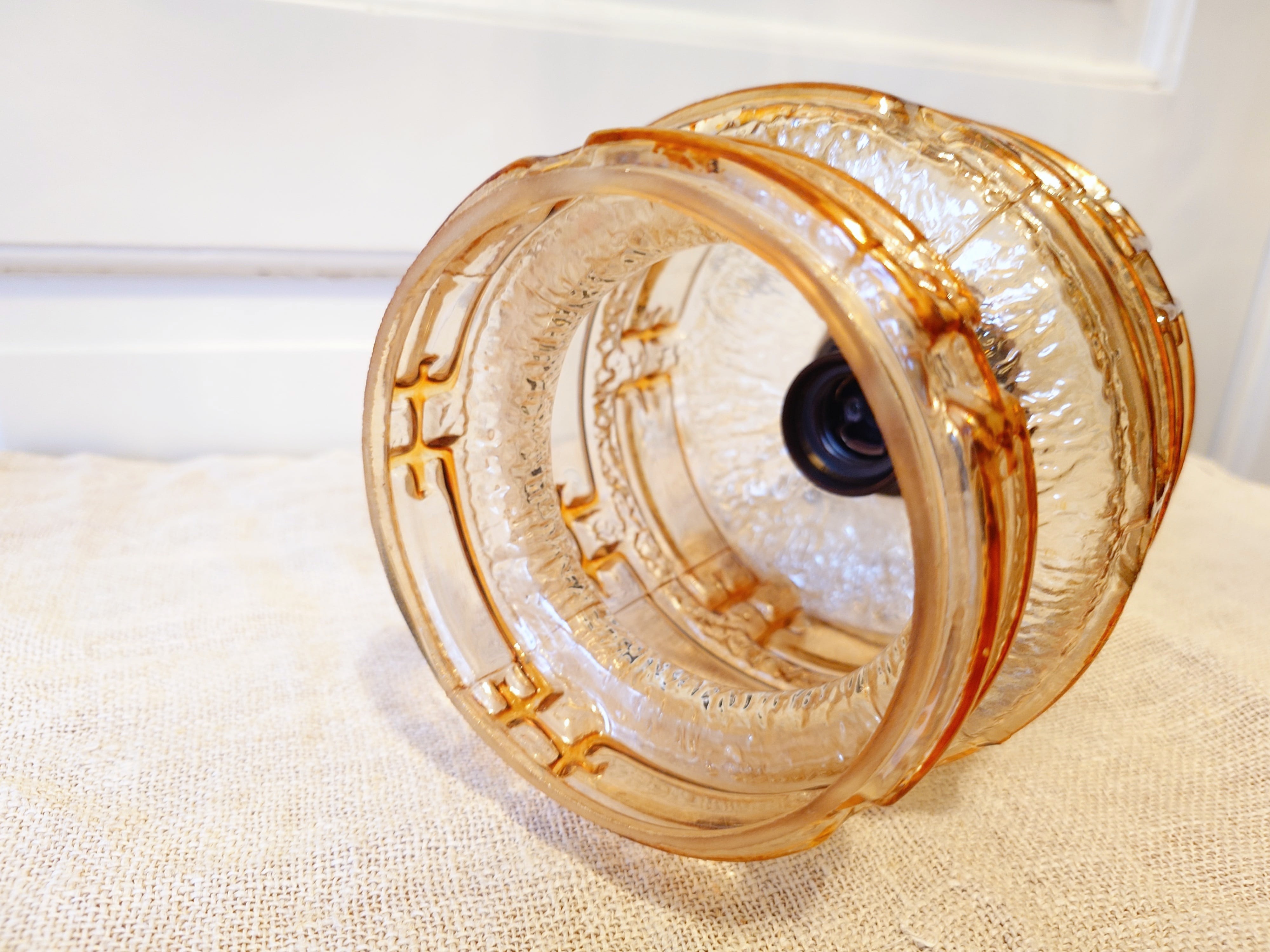 Kattolamppu, jossa on vaaleaa ja tummaa amber sävyä kuvioinnissa.