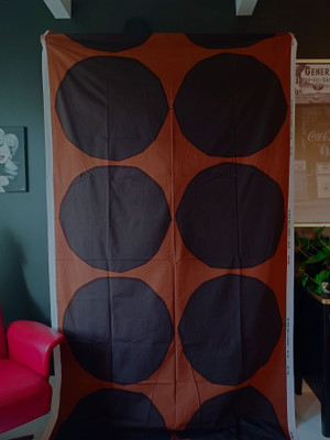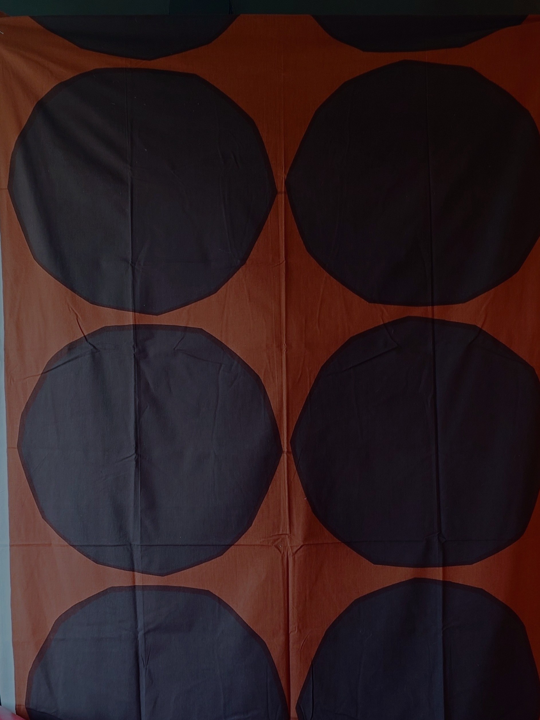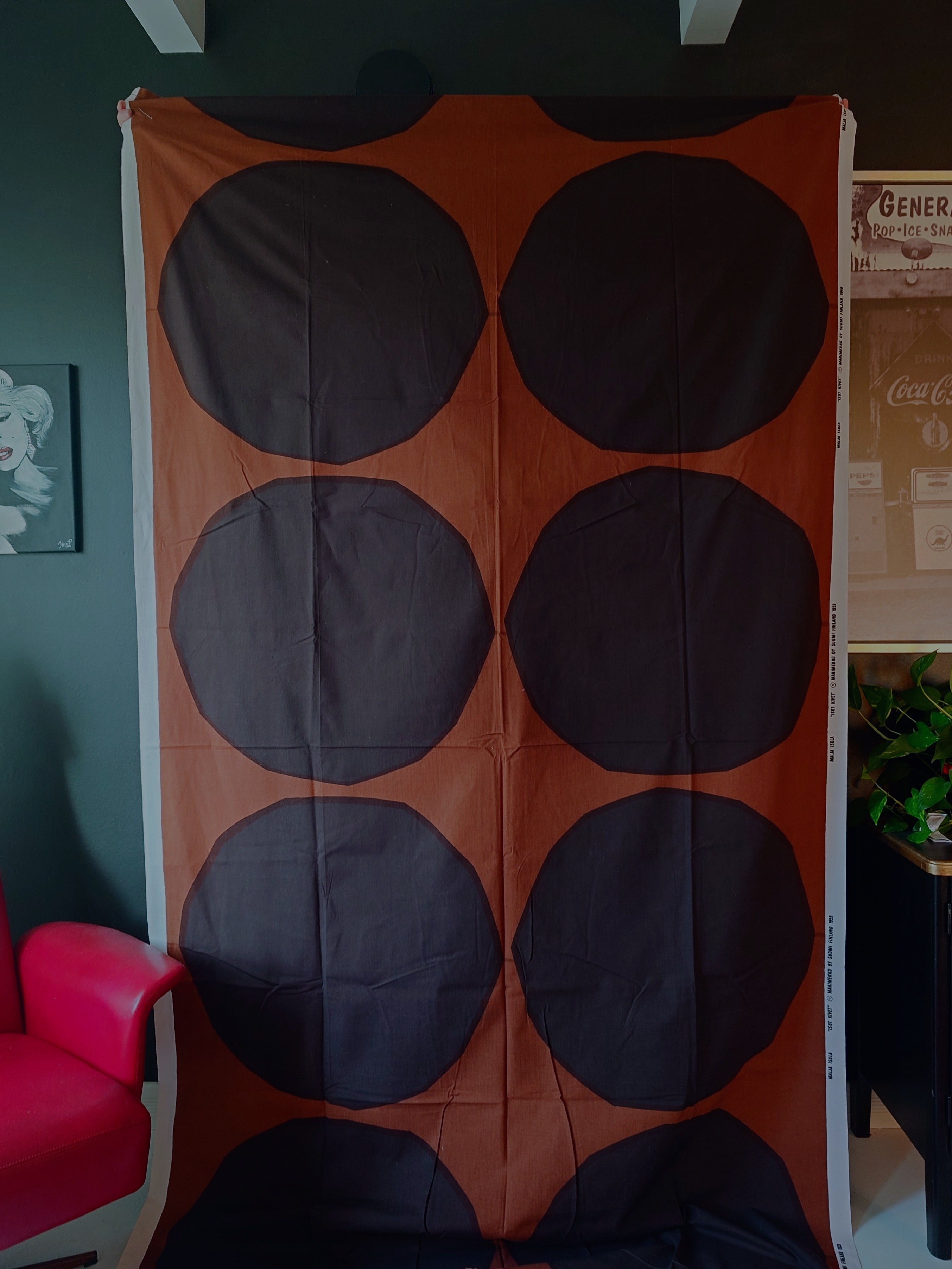 Ruskea Isot kivet verho / pöytäliina / kangas. Marimekko 1959.