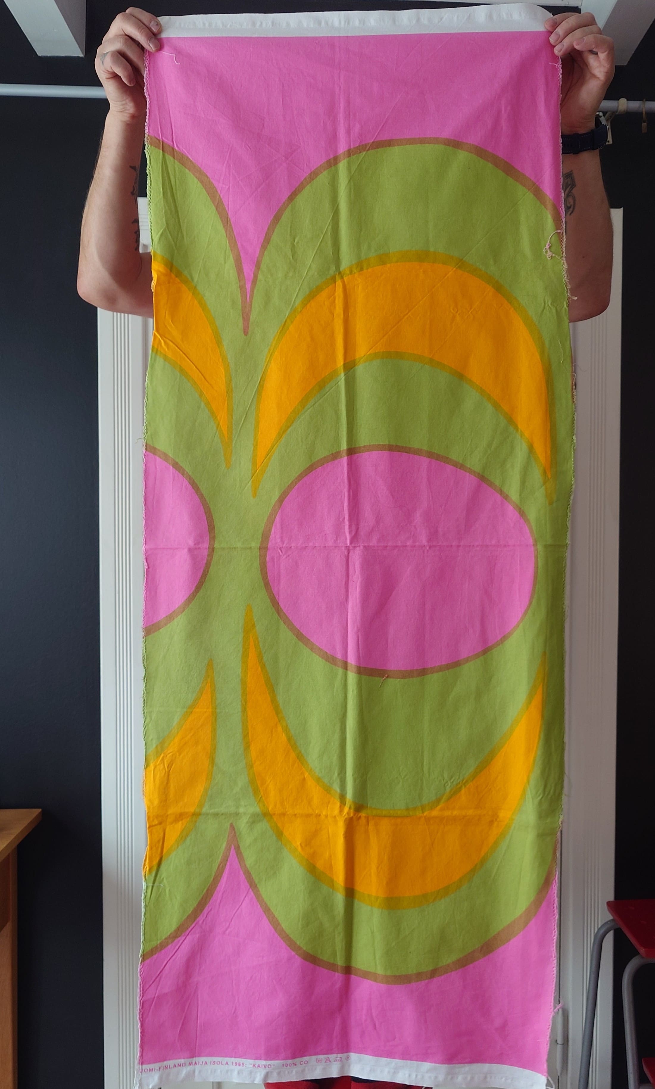 Marimekko Maija Isola Kaivo kangaspala 1965 pinkki vihreä