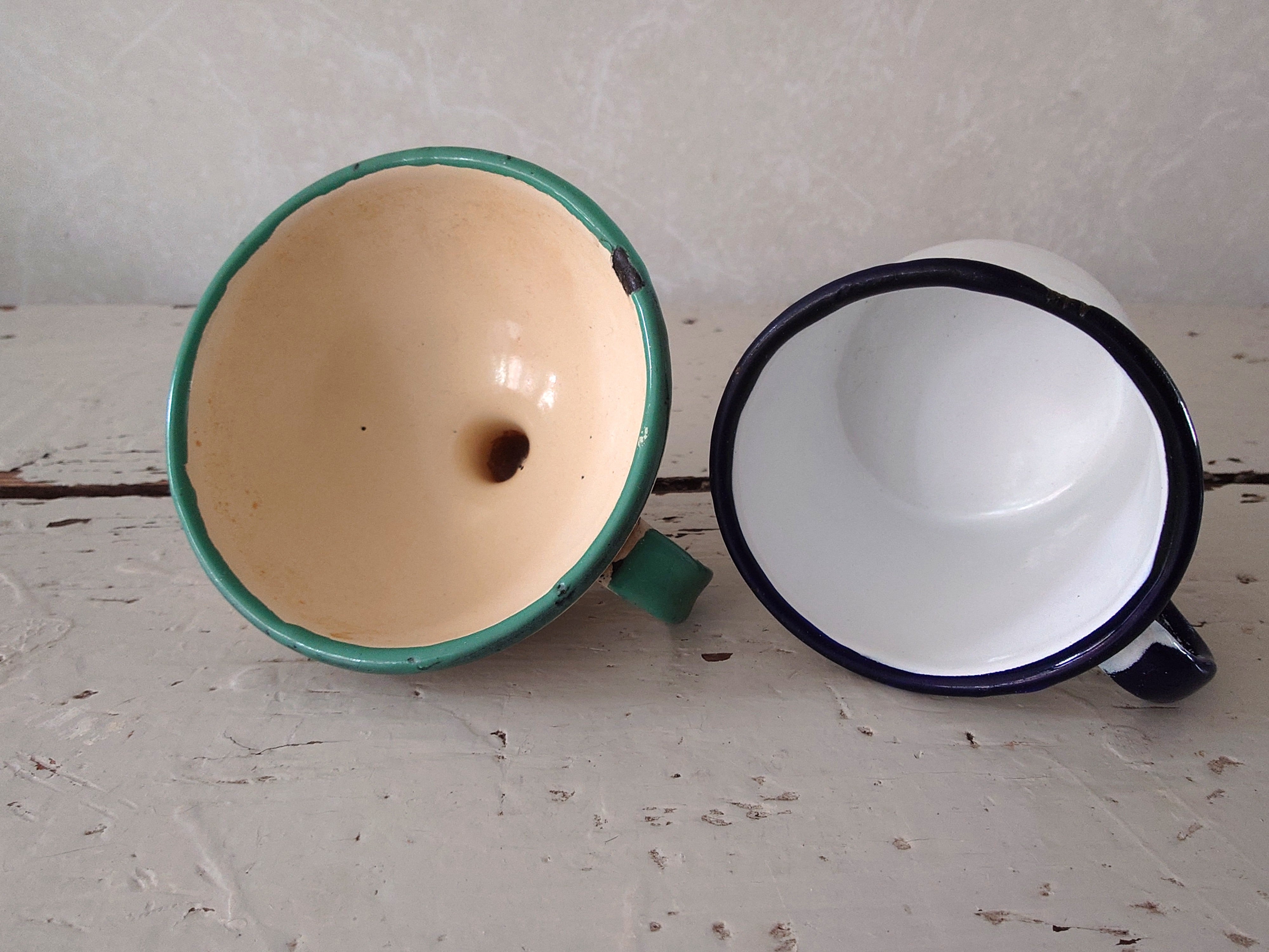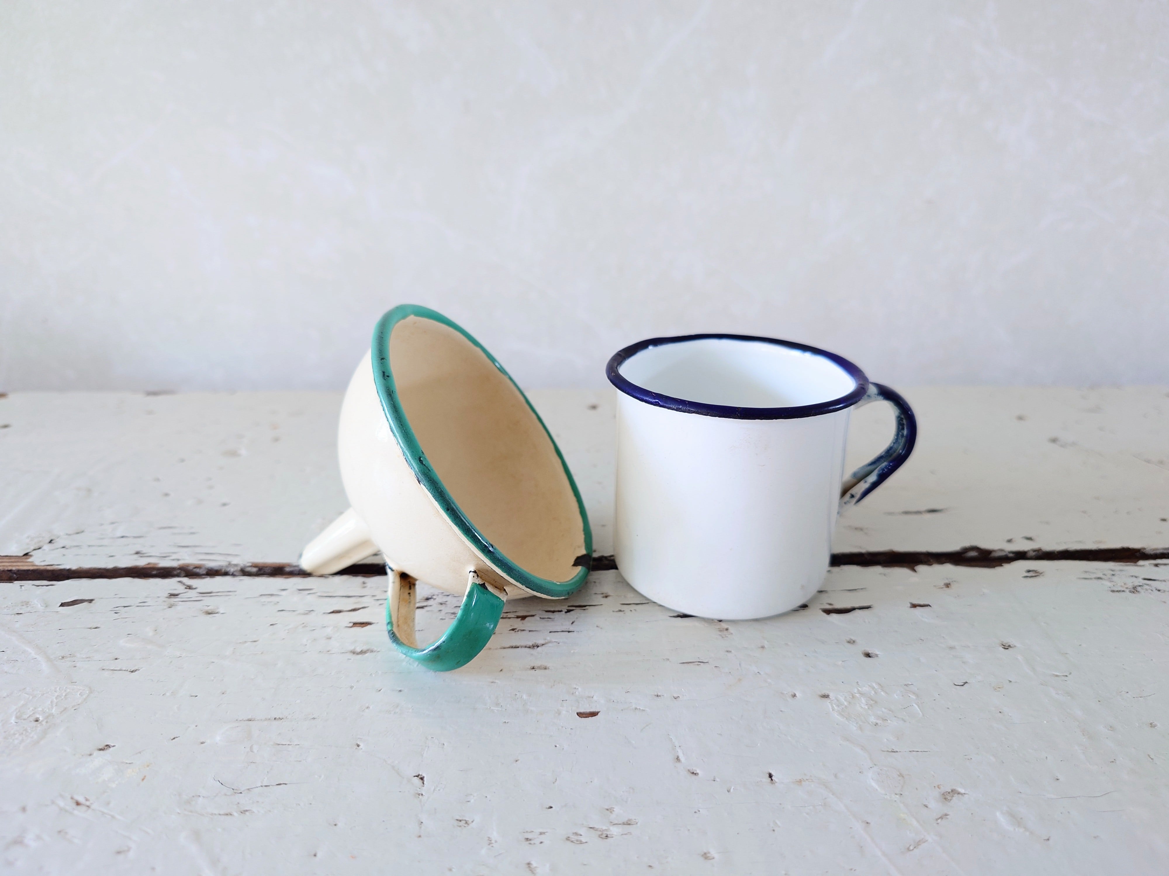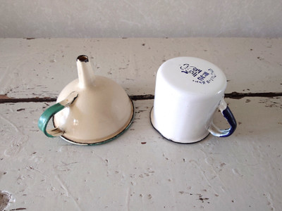 Vanhat pienet emaliesineet, jotka myydään yhdessä.