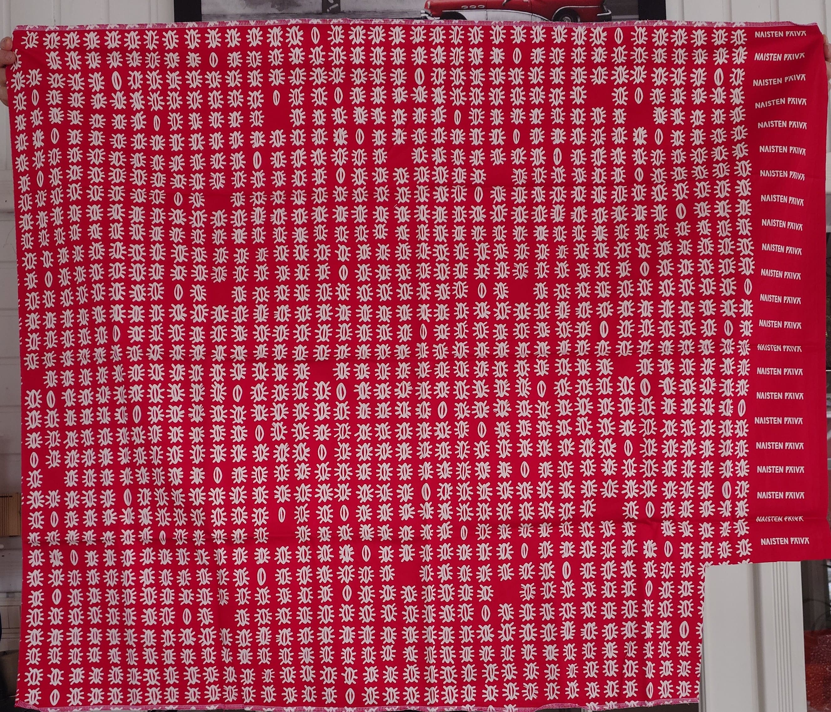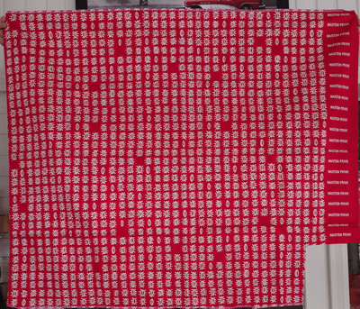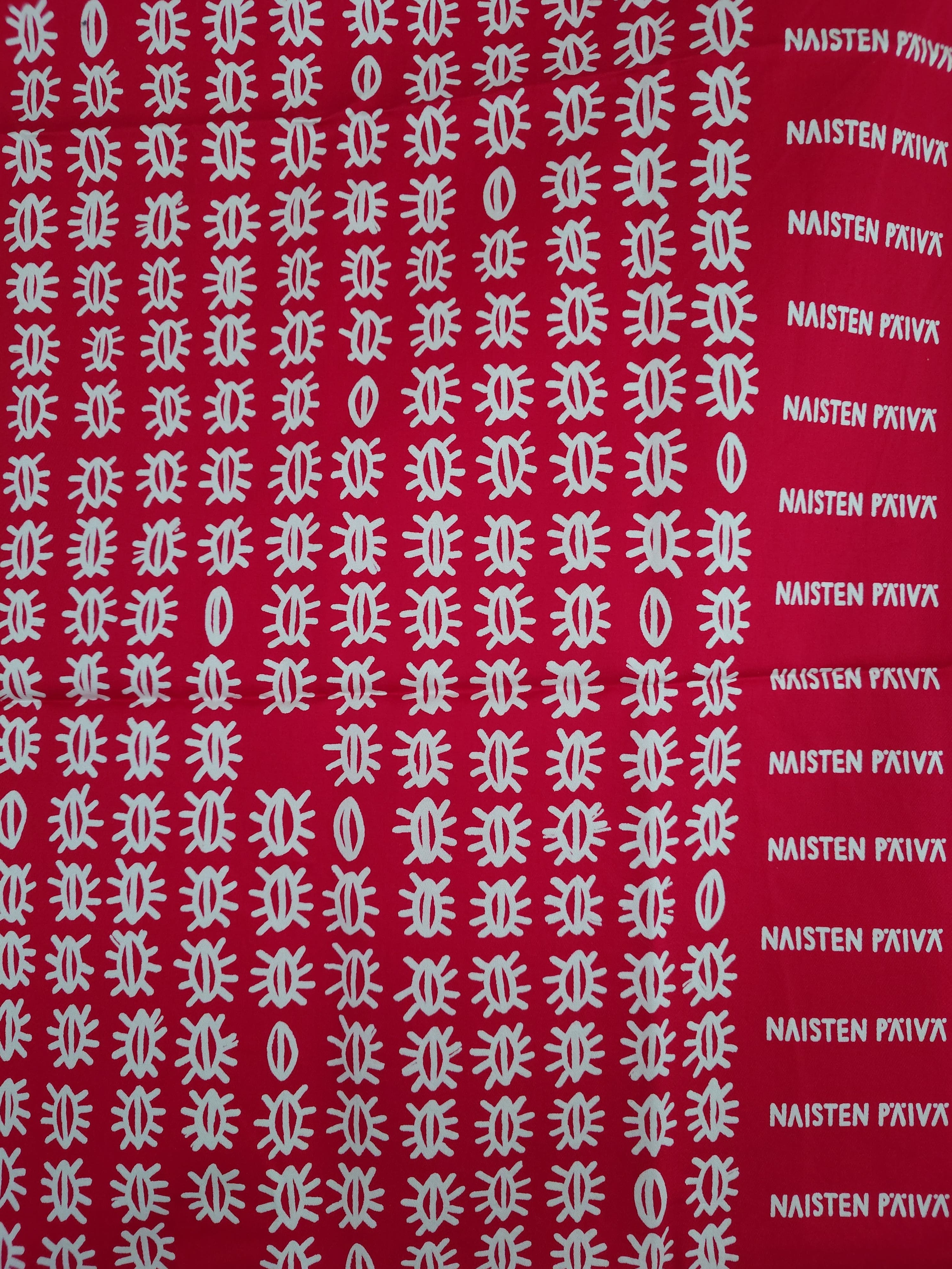 Naisten päivä punainen puuvillakangas. Kuosia kutsutaan myös kirkkoveneeksi.