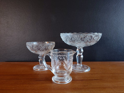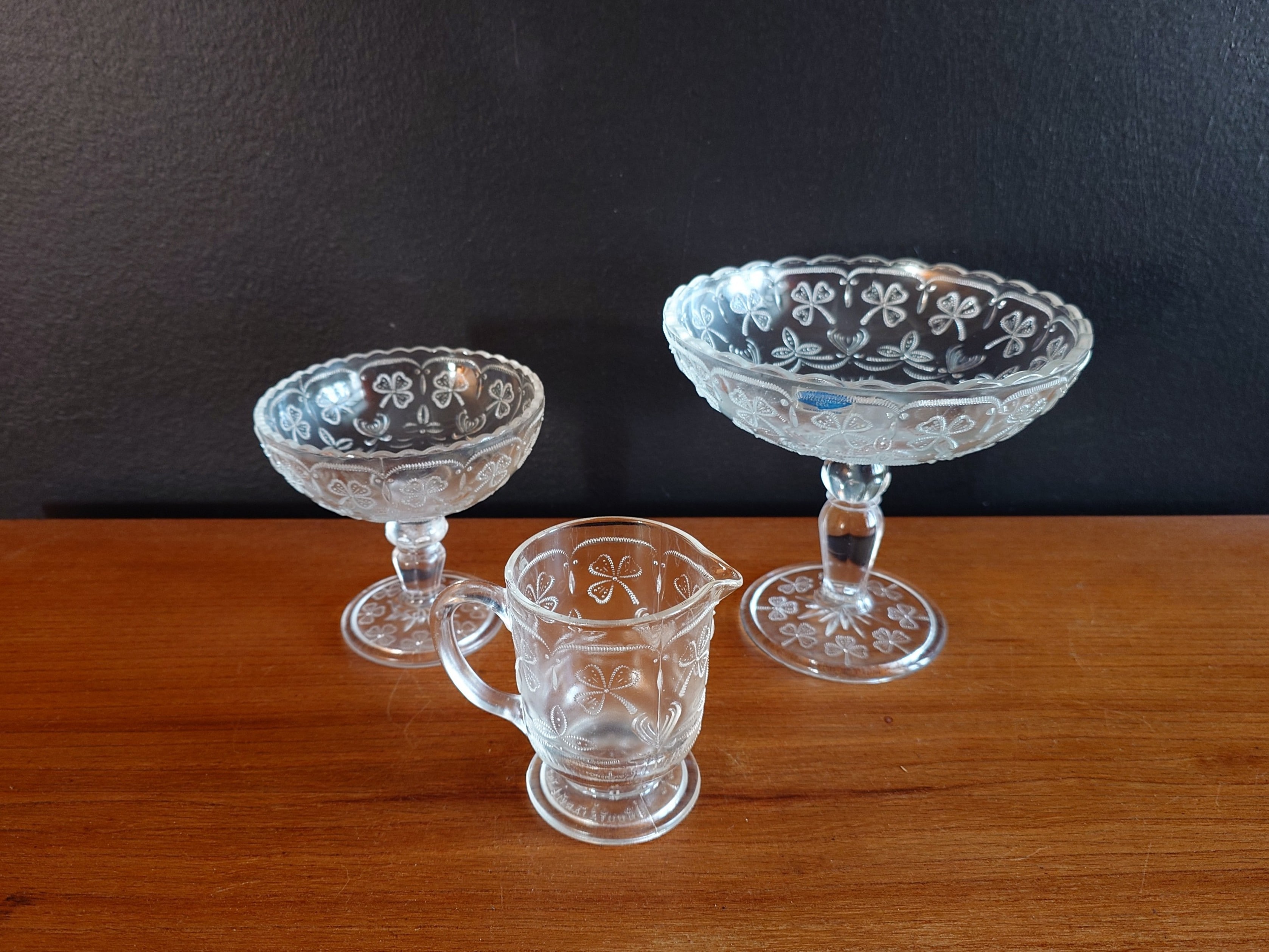 Hyväkuntoiset ja ehjät lasiastiat.