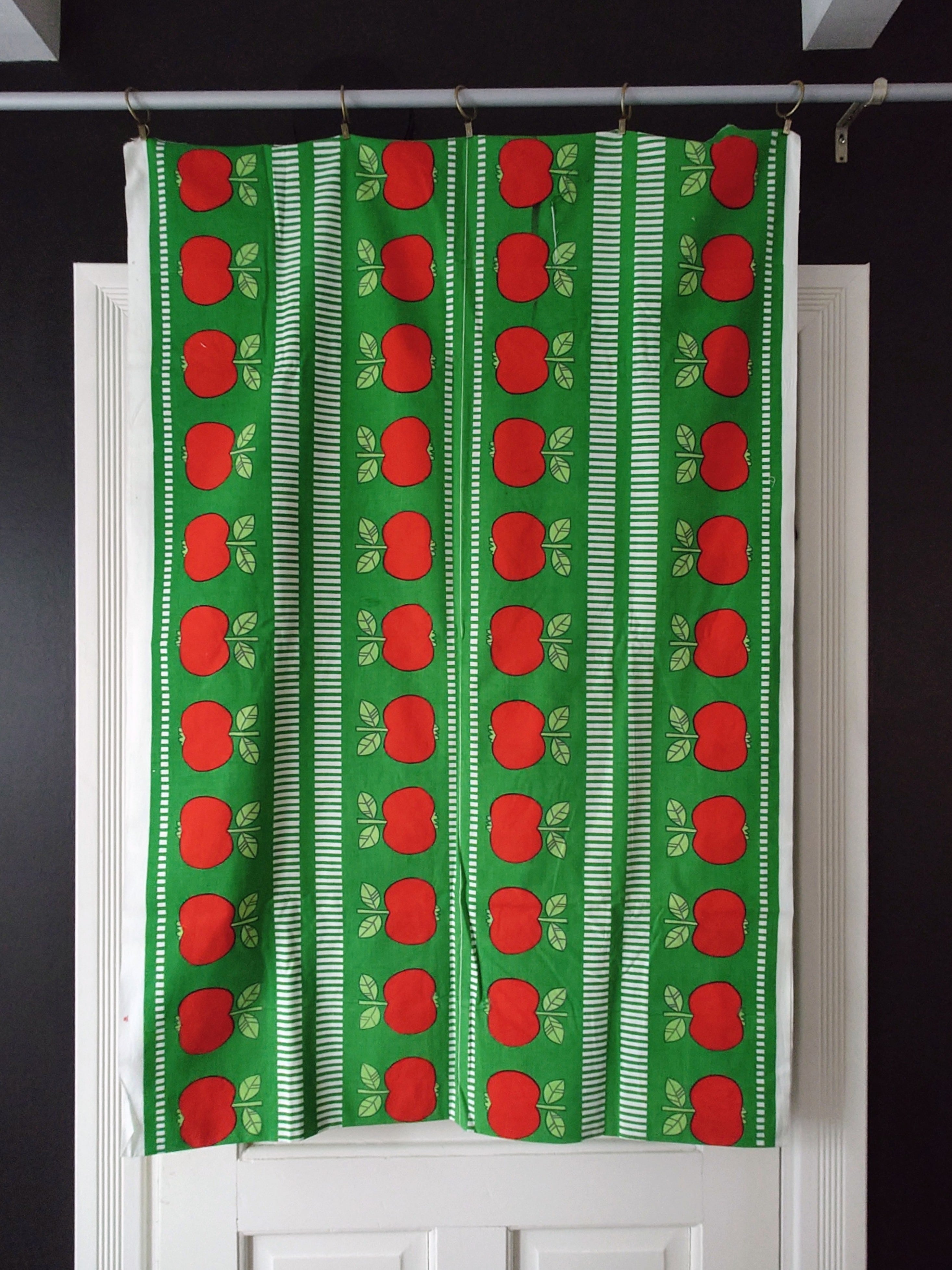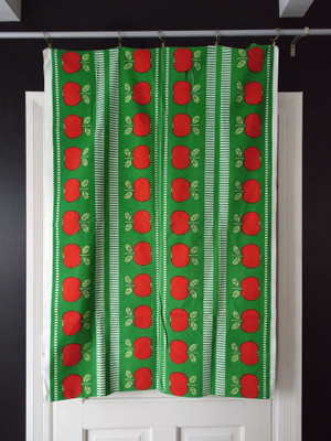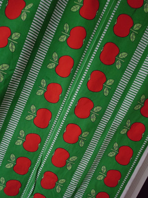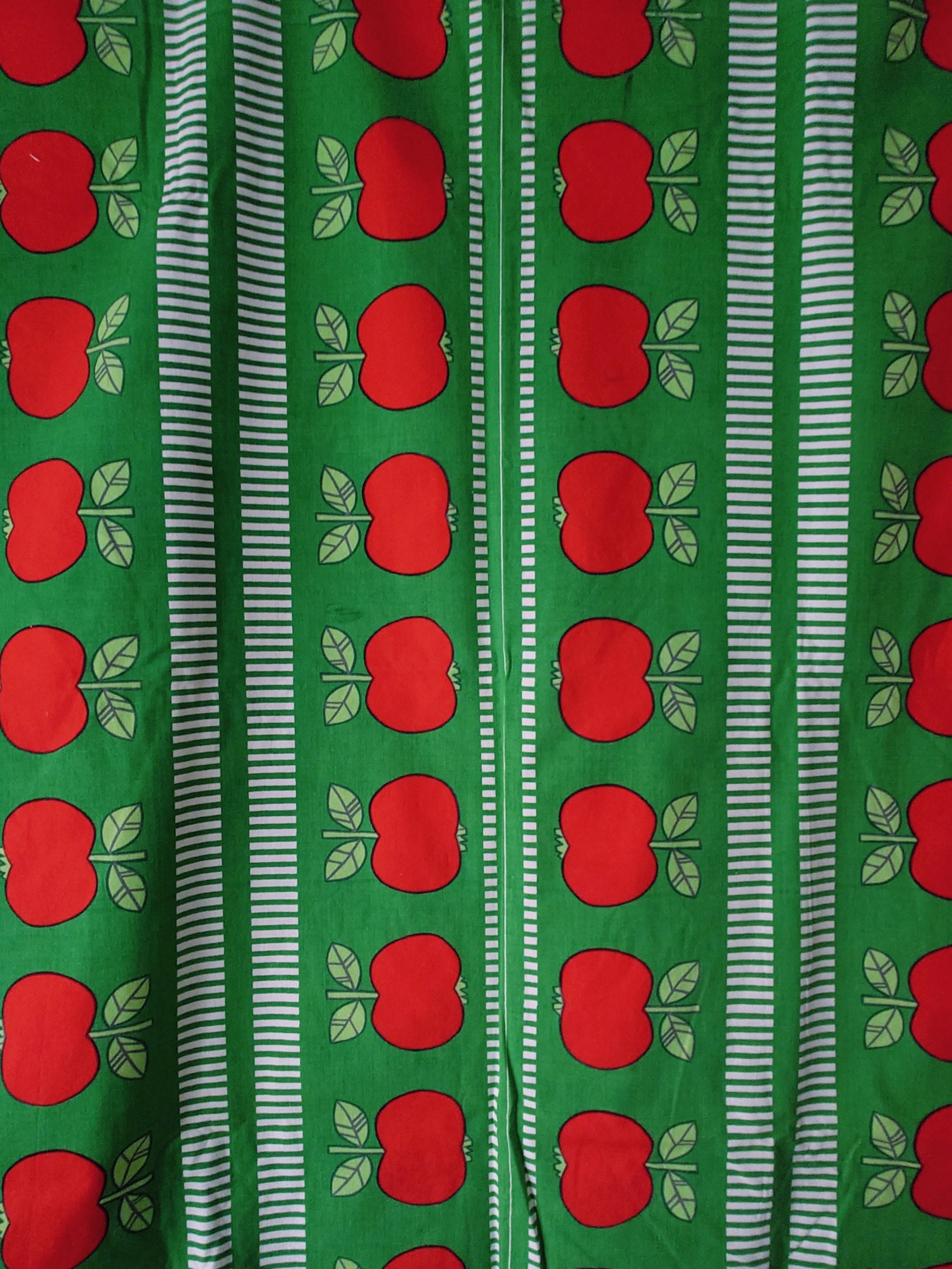 Retroon sisustukseen ja jouluun sopiva kaunis omenakuosinen puuvillakangas.