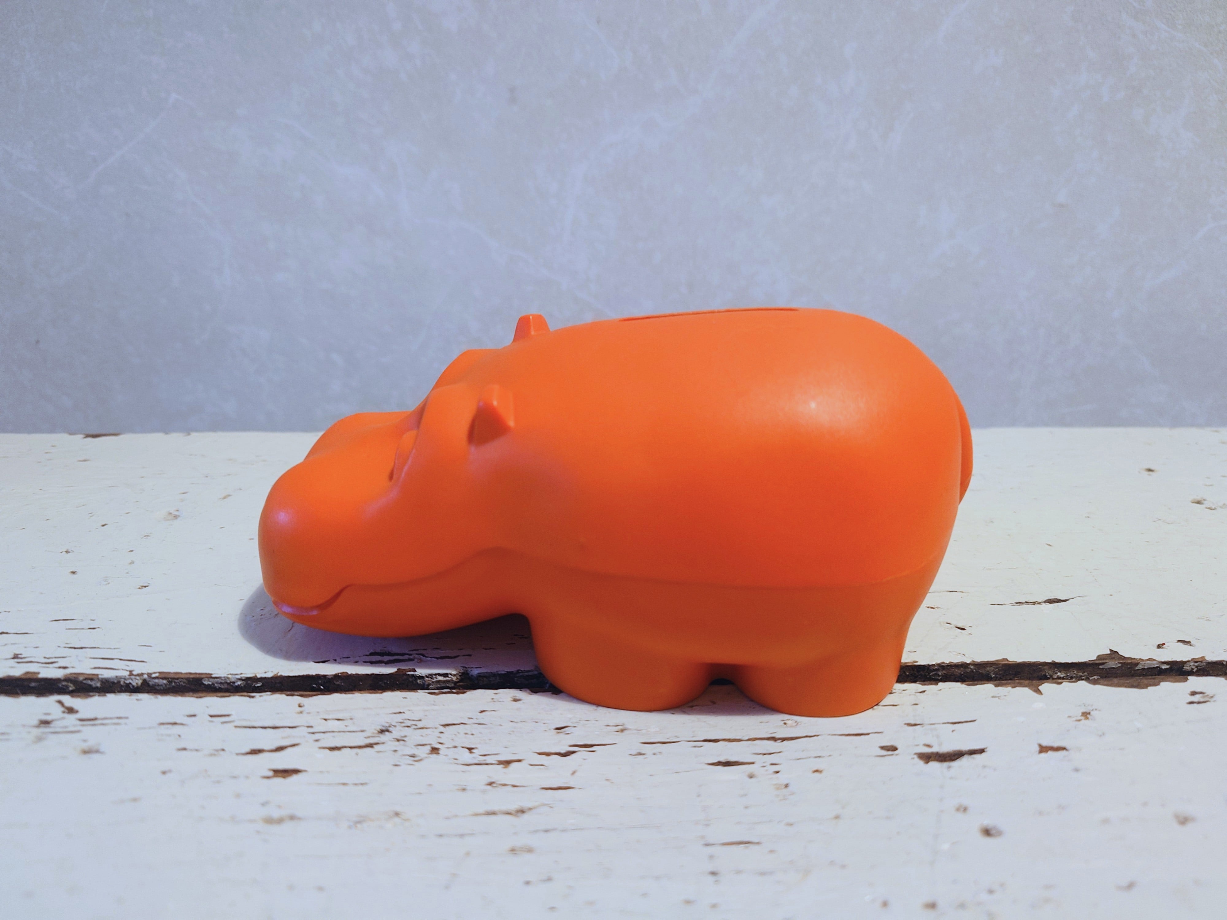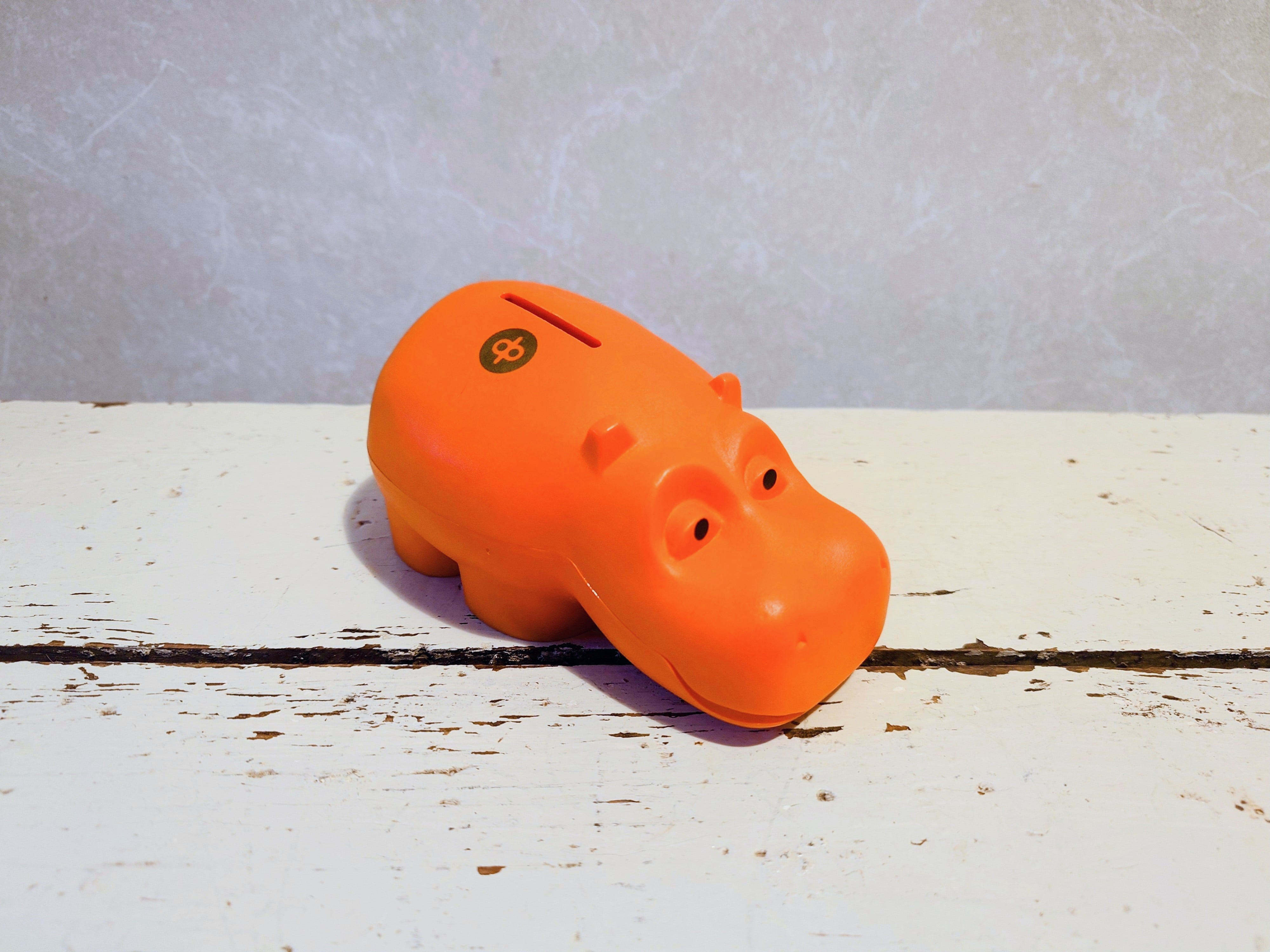 Pirteä vanha oranssi rahalipas. Pohjassa stanssaus Henri Hippo, MK tuote.