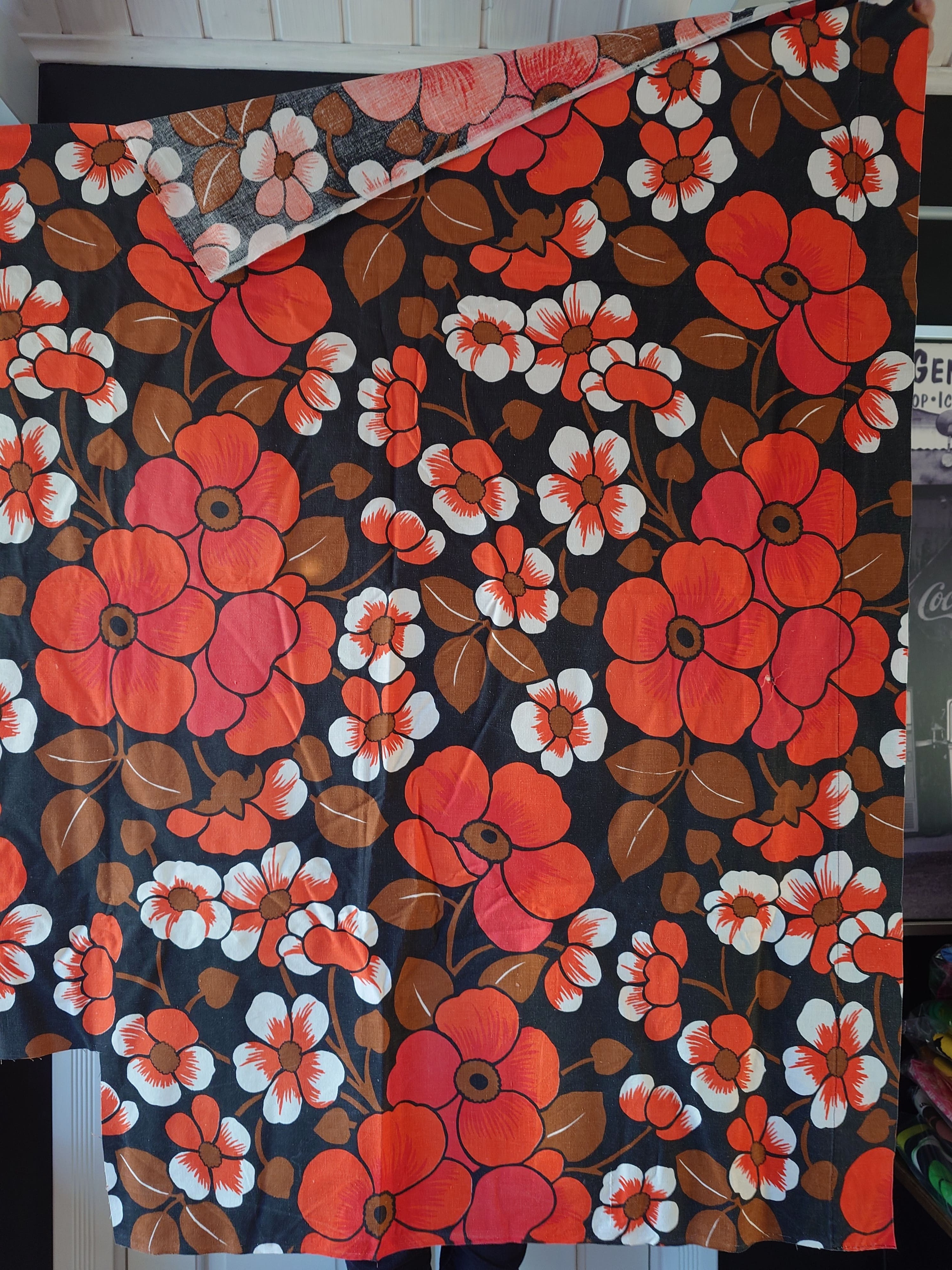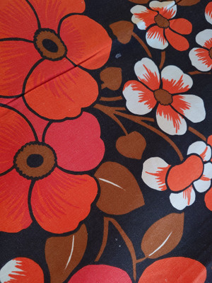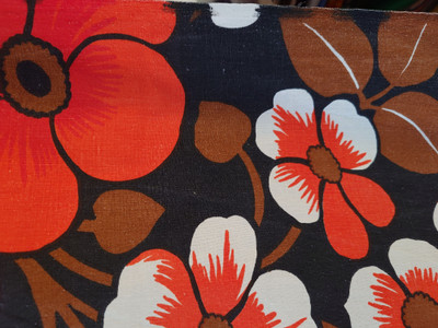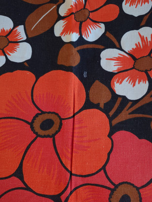 Puuvillakangas on alunperin ollut vieläkin räikeämpi, mutta ajan myötä jonkun verran haalistunut.