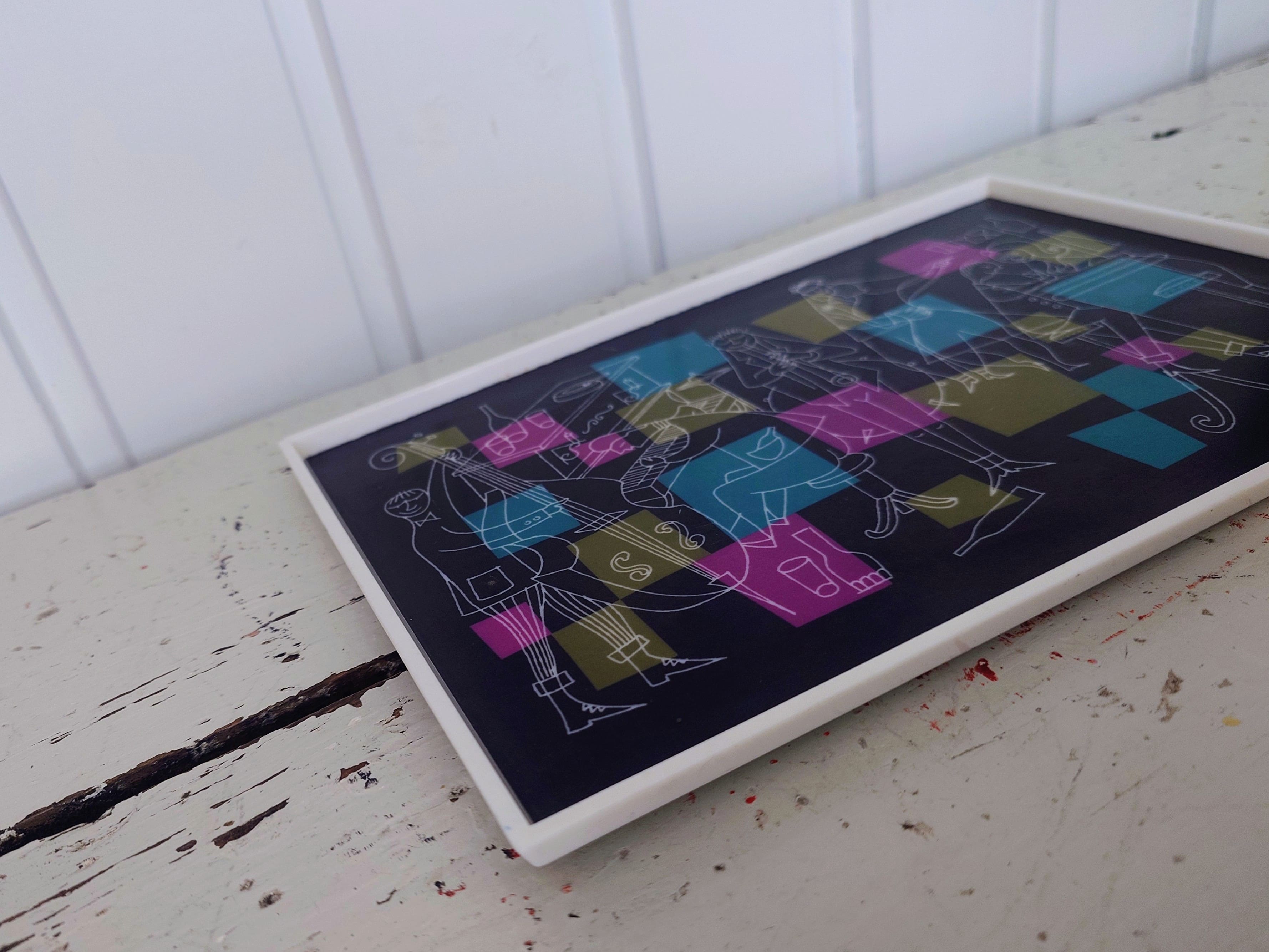 Vintage ruotsalainen värikäs tarjotin.