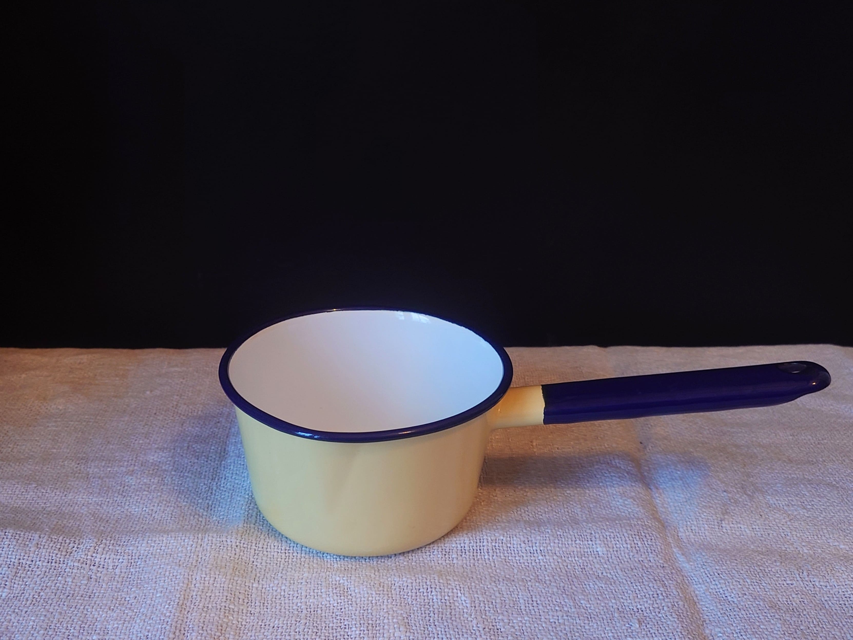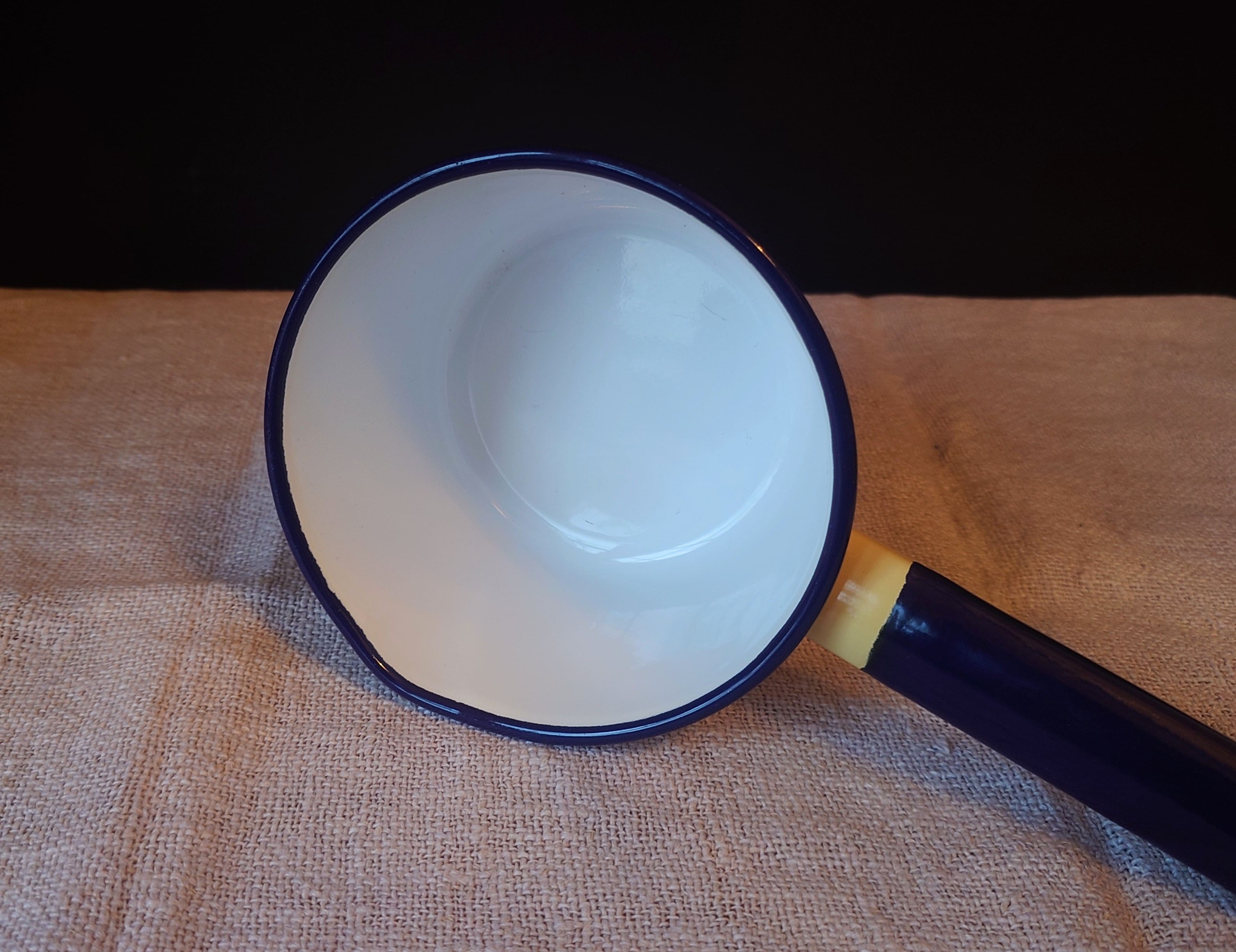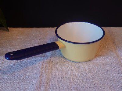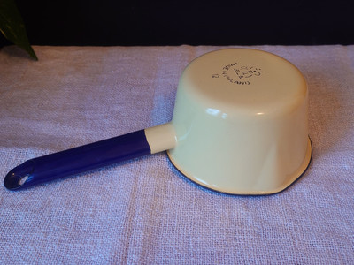 Hyväkuntoinen ja siisti kasari tai kastikekattila emalia. Pieni kaatonokka.