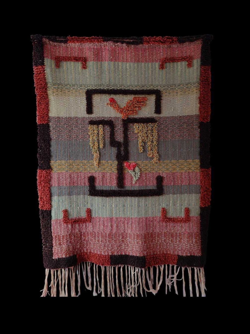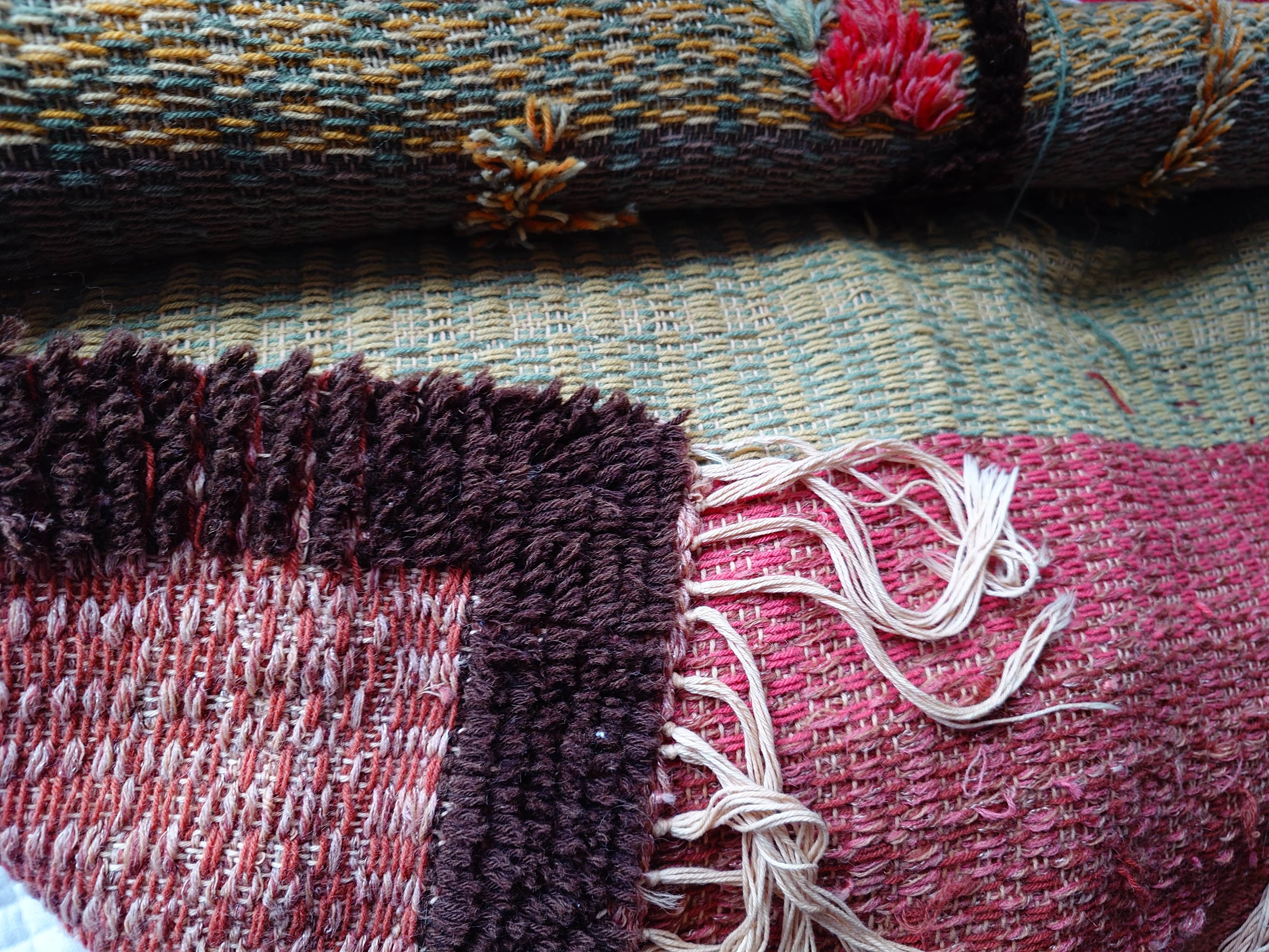 Ryijy on hyväkuntoinen. Kevyempi ja ohuempi kuin tavanomaiset ryijyt.