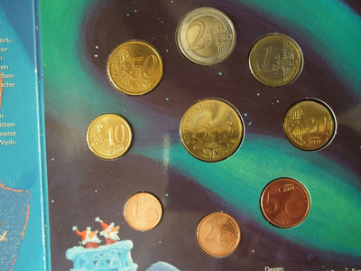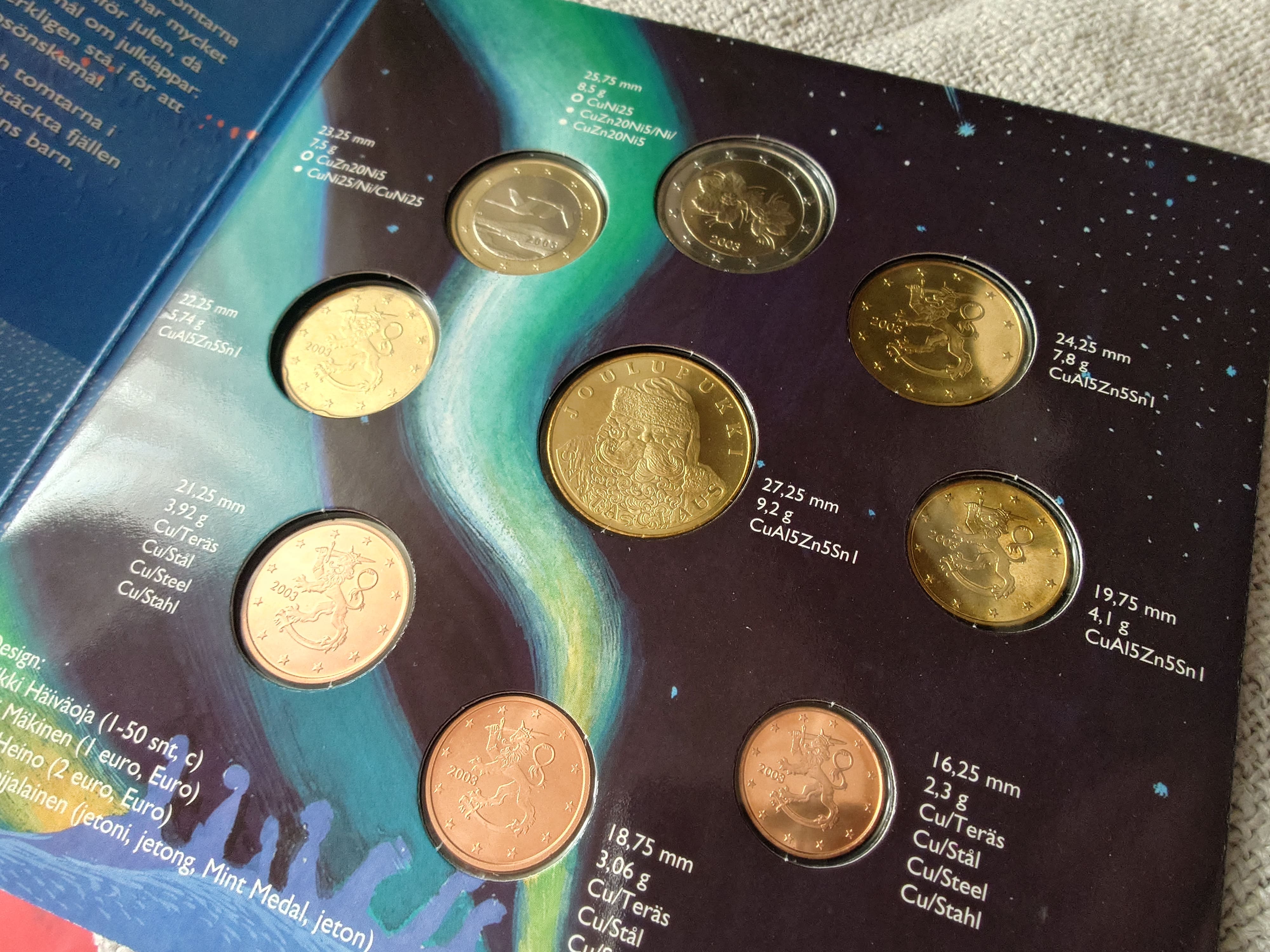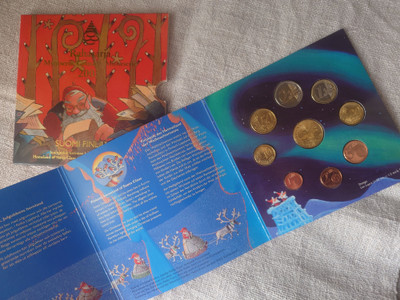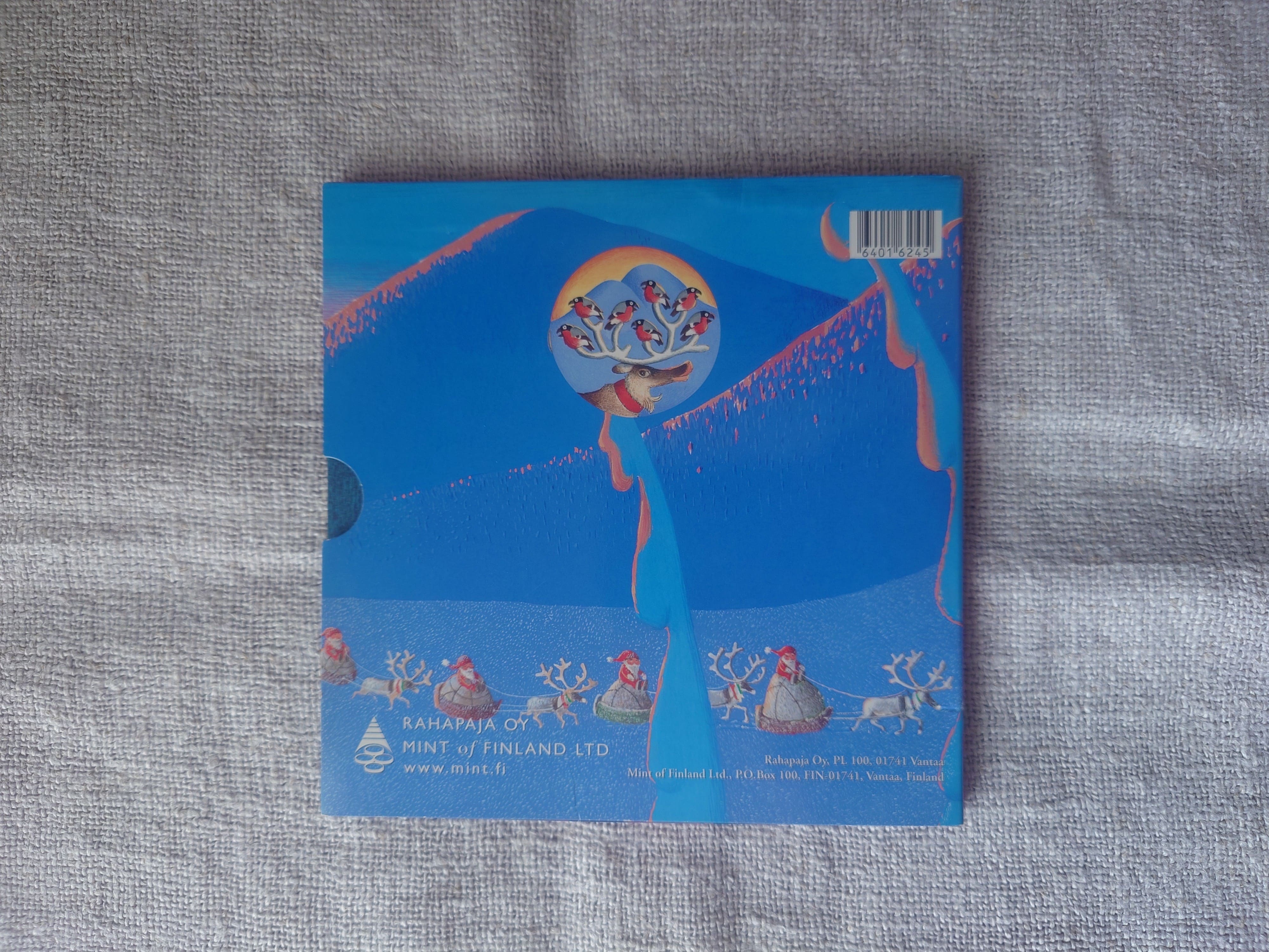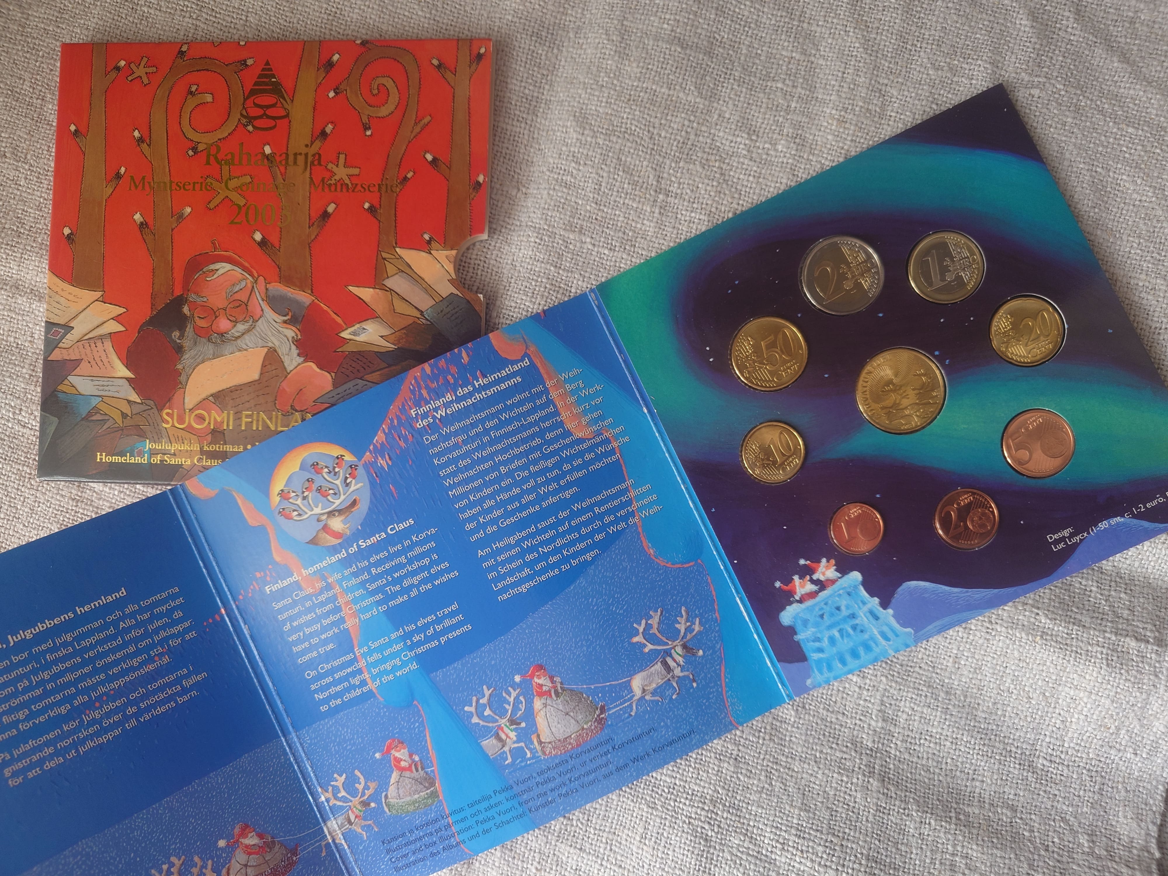 Pahvisessa kotelossa on rahasarja, missä on eurokolikot sekä Joulupukki / Korvatunturi juhlaraha.