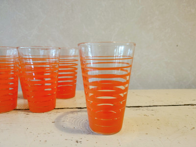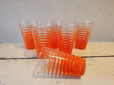 Isot kivat raidalliset juomalasit. Herkullinen oranssi väri.