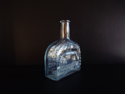 Riihimäki koristepullo, joka on tehty lasitehtaan 75v juhlavuoden kunniaksi.