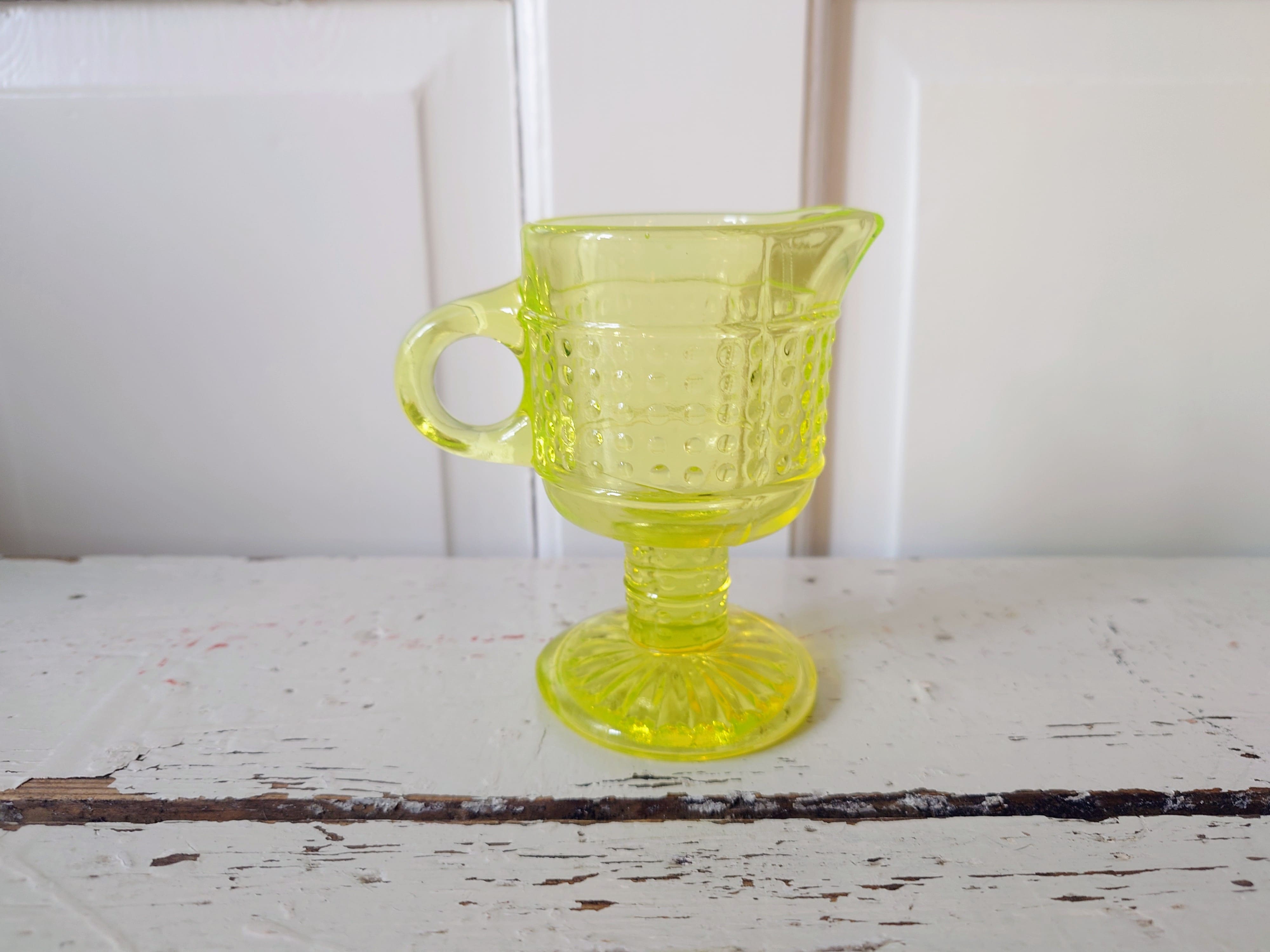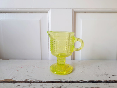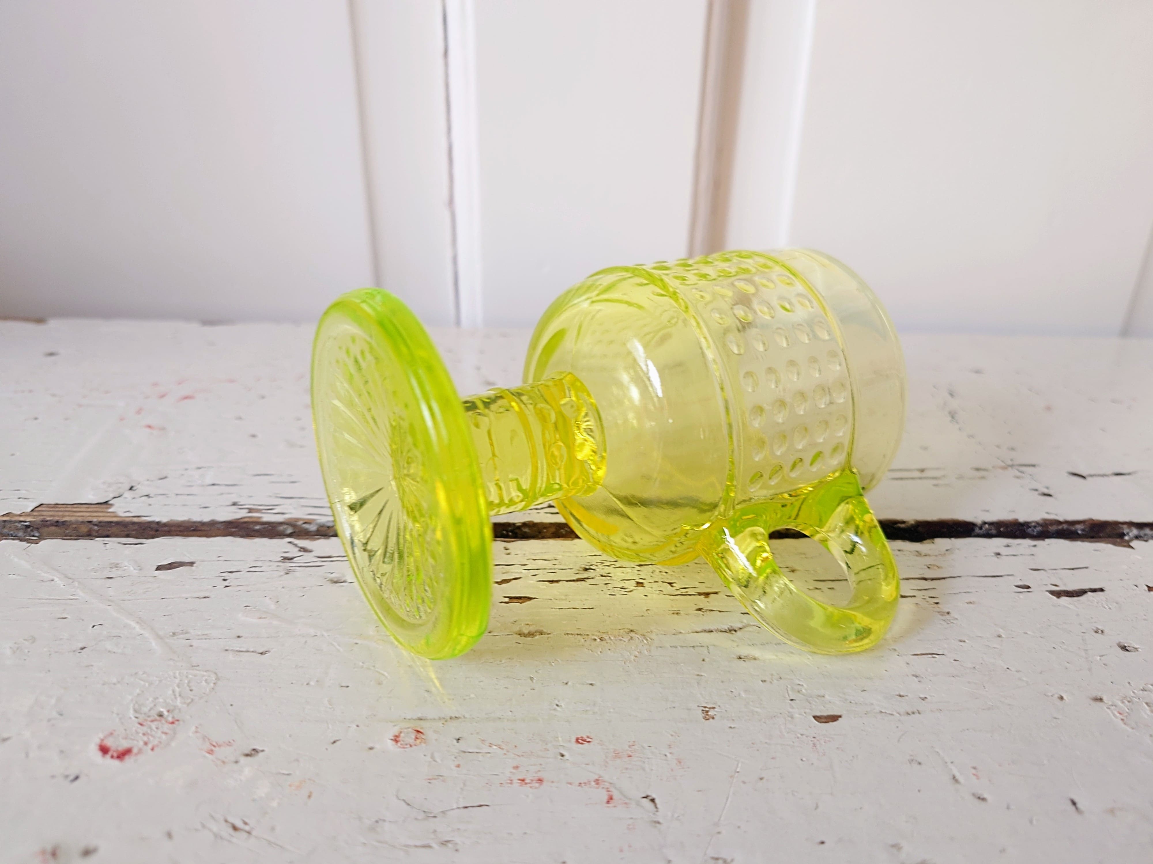 Keltaista uraanilasia, joka hohtaa vihreänä ultraviolettivalossa.