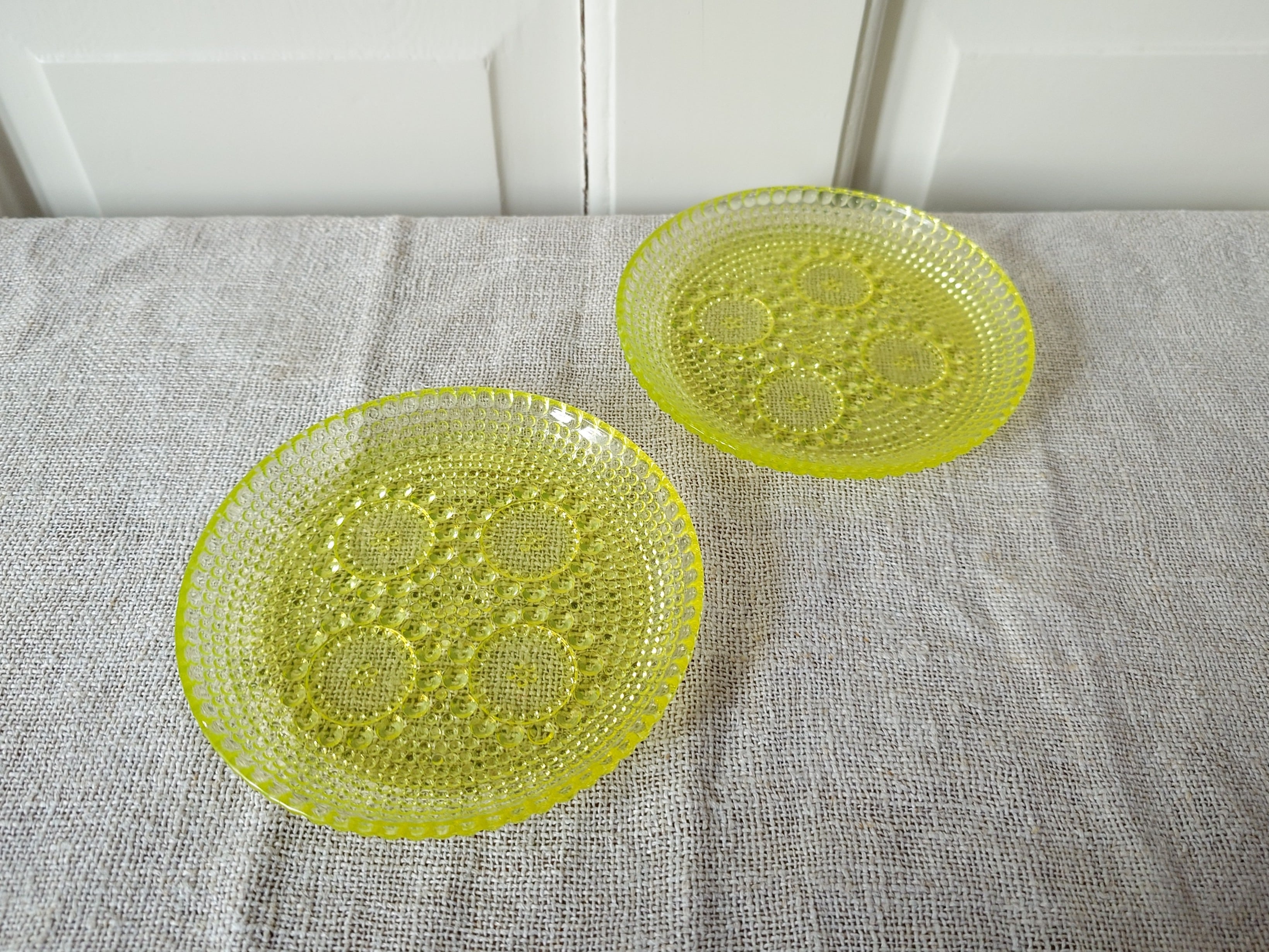 Raikas keltainen Grapponia on lasiastioiden klassikko.