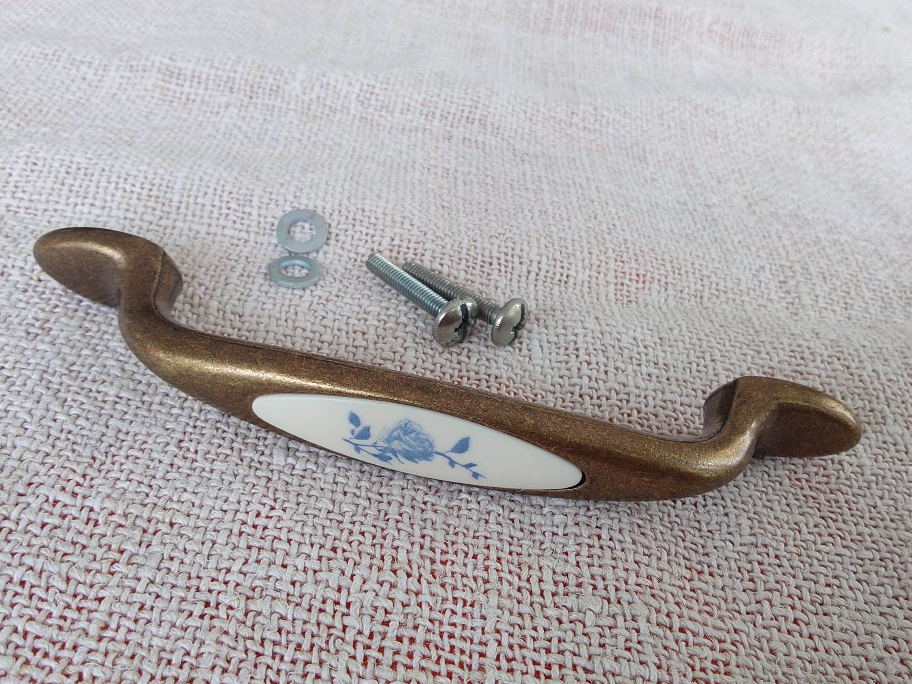 Käyttämätön vintage messinkivedin, jossa on upotettu ruusukoriste.