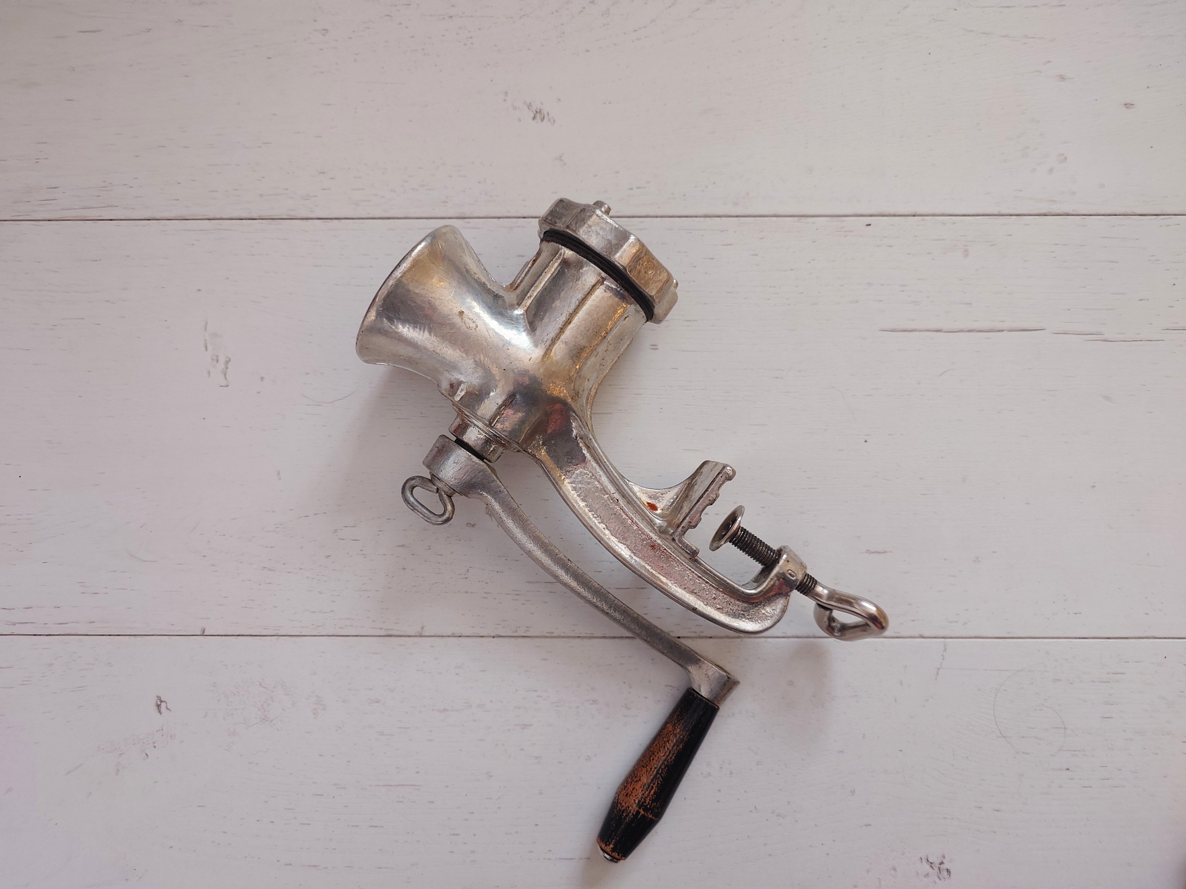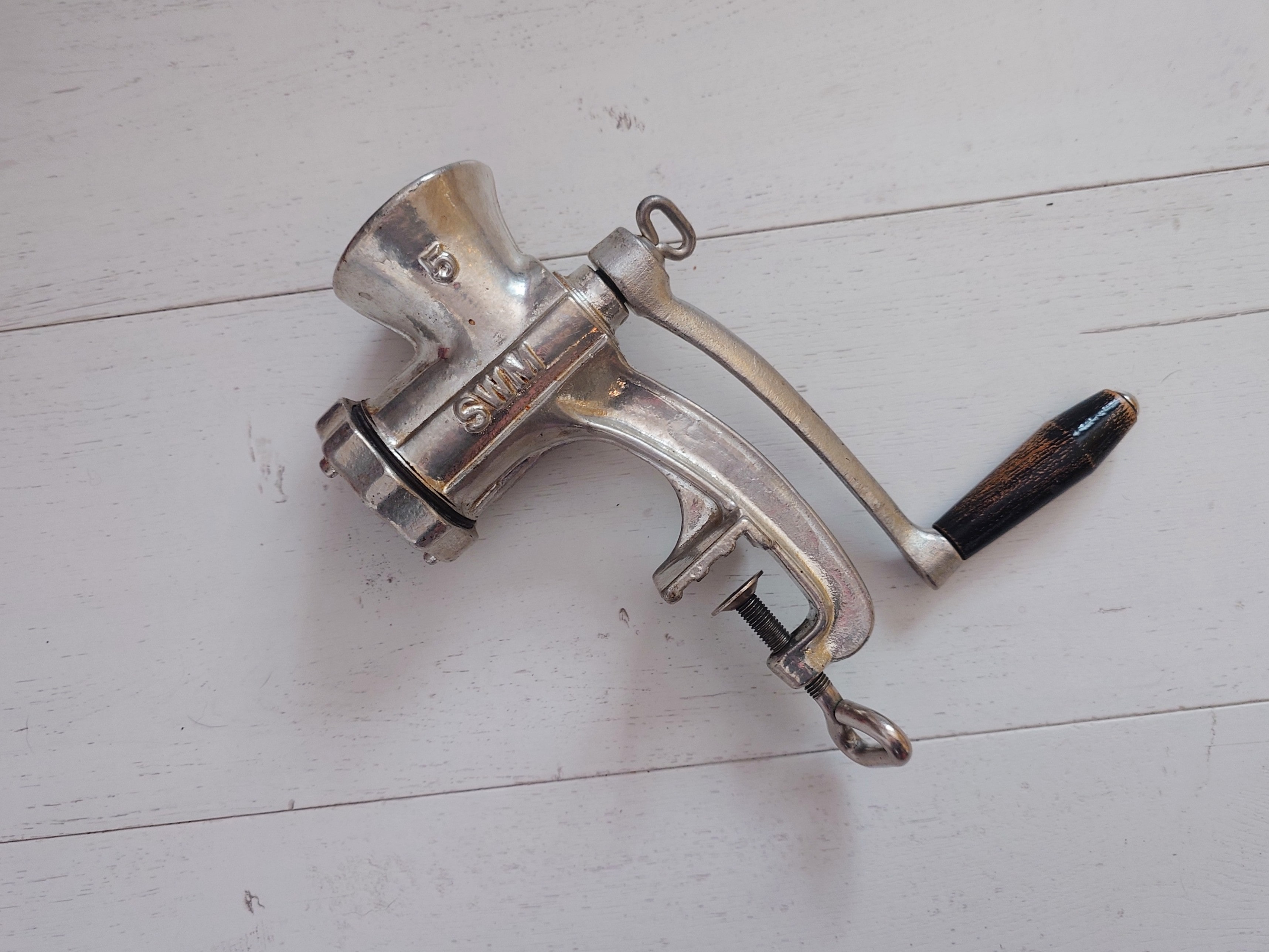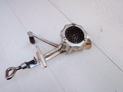 Saksalainen laadukas sähkösinkitty lihamylly. Kiinnitetään pöydän reunaan.