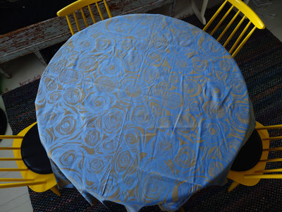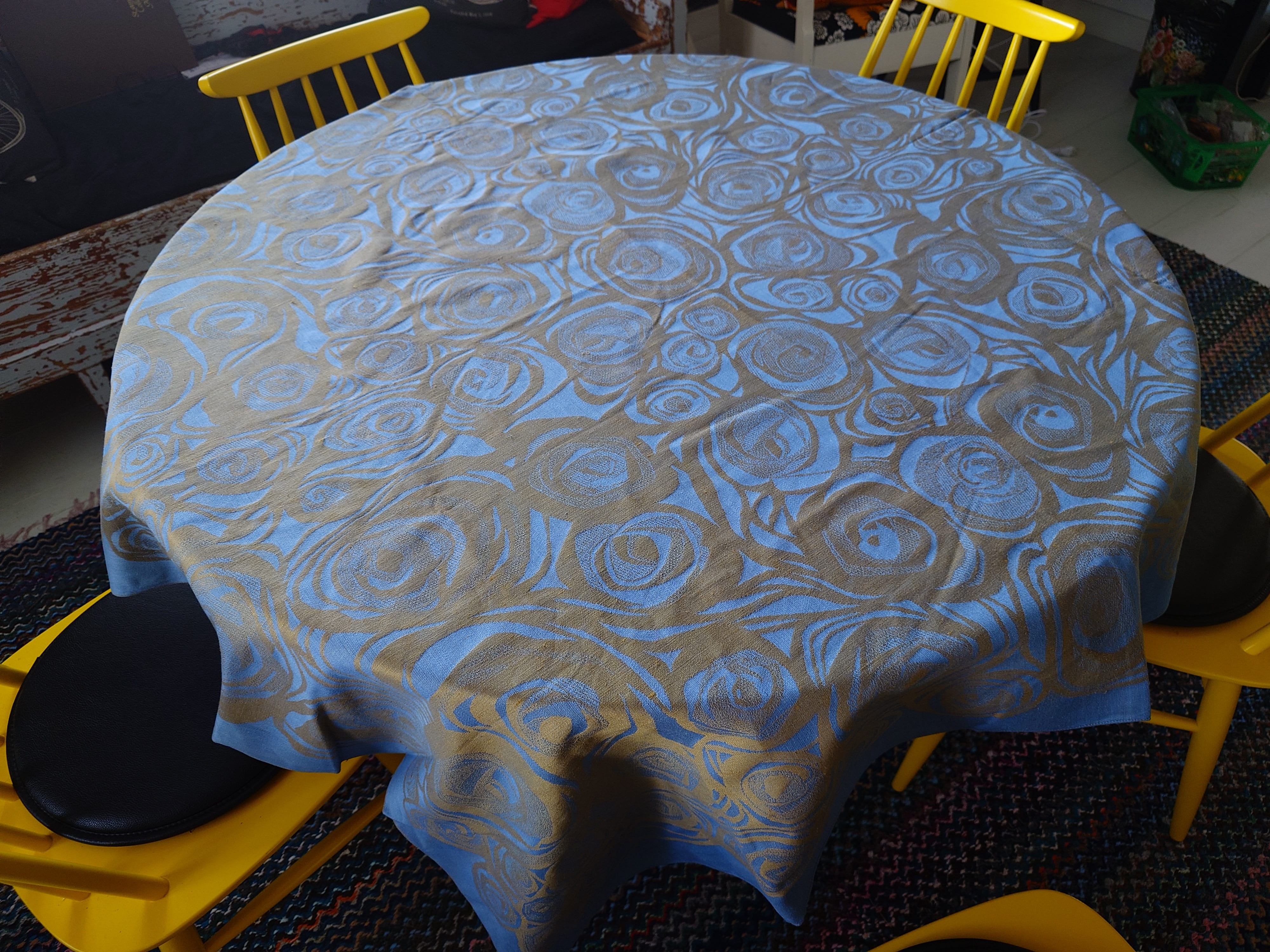 Pöytäliina sopii pieneen ruokapöytään ja myöskin pyöreään pöytään oikein hyvin.