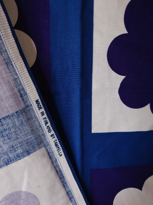 Harvinaisempi vintage Tampella kuosi, jossa on piparkakkuja tai kukkakuvioita. Puuvillaa. Arviolta 1970-lukua.