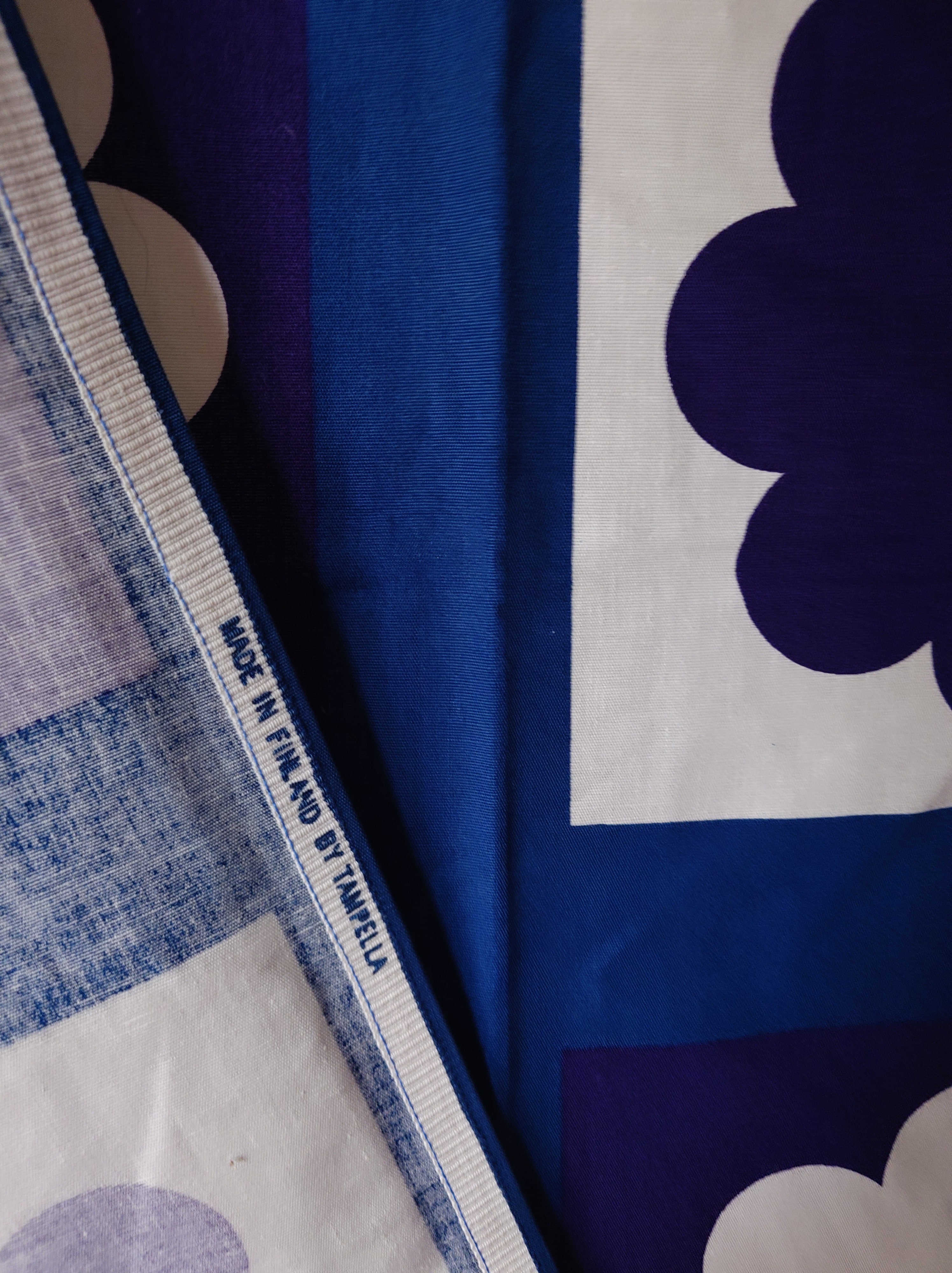 Pöytäliina on hyväkuntoinen ja värit kirkkaat, eikä sitä liene juuri käytetty. Käy myös verhoksi tai muuhun käyttöön.