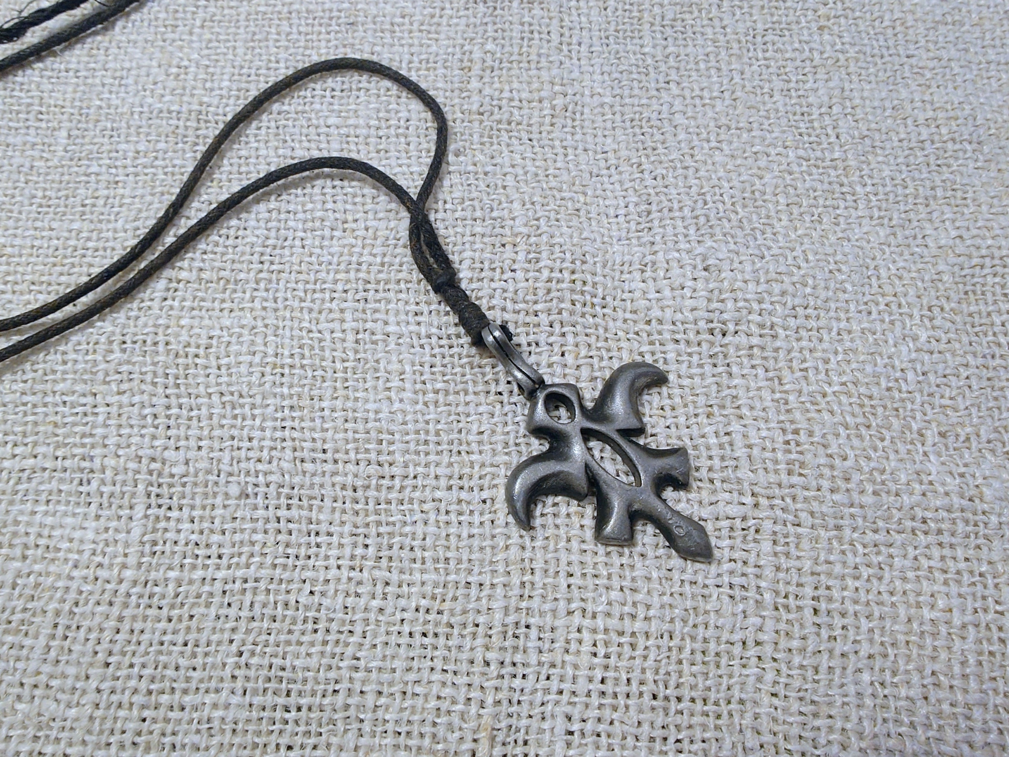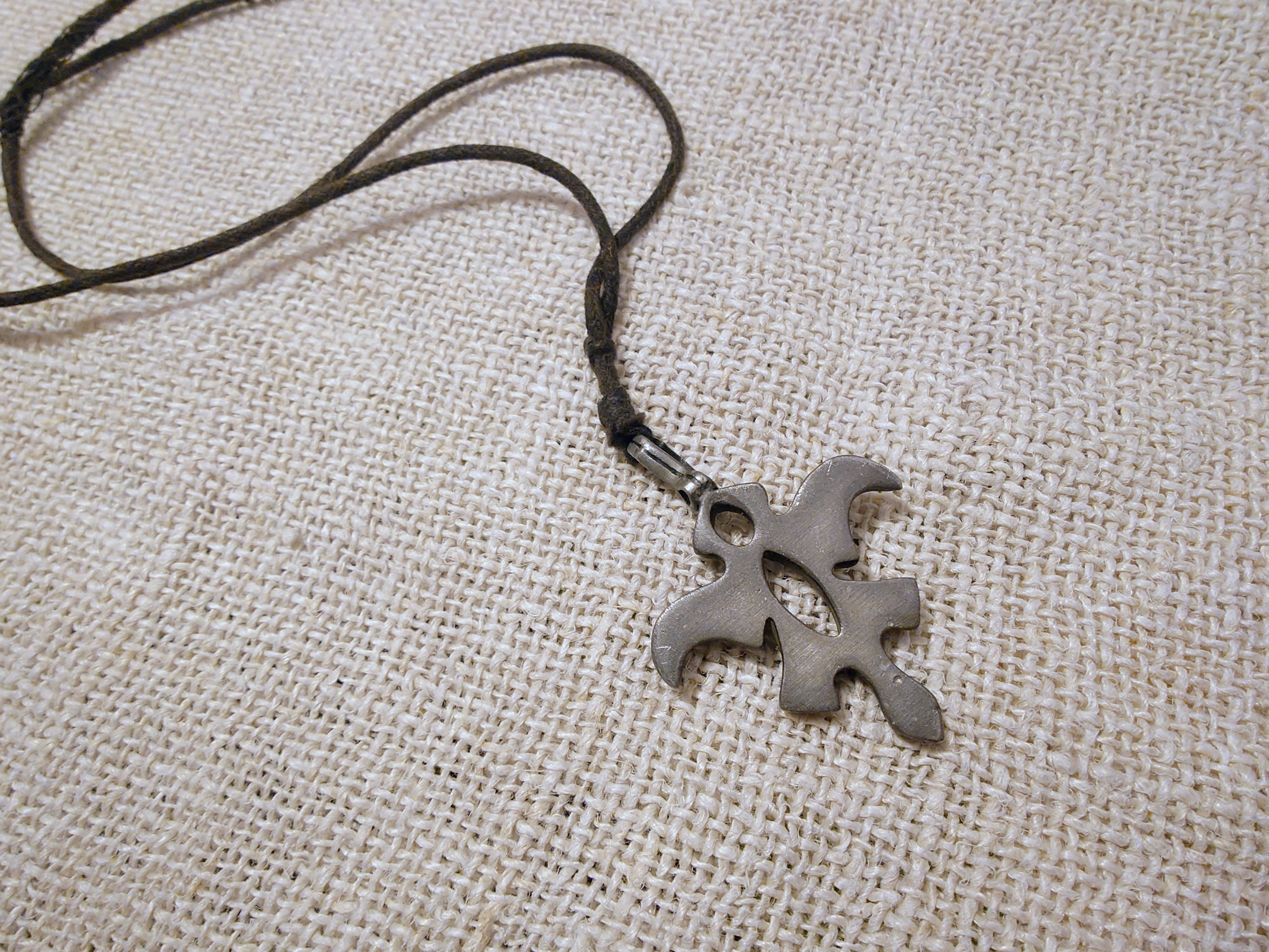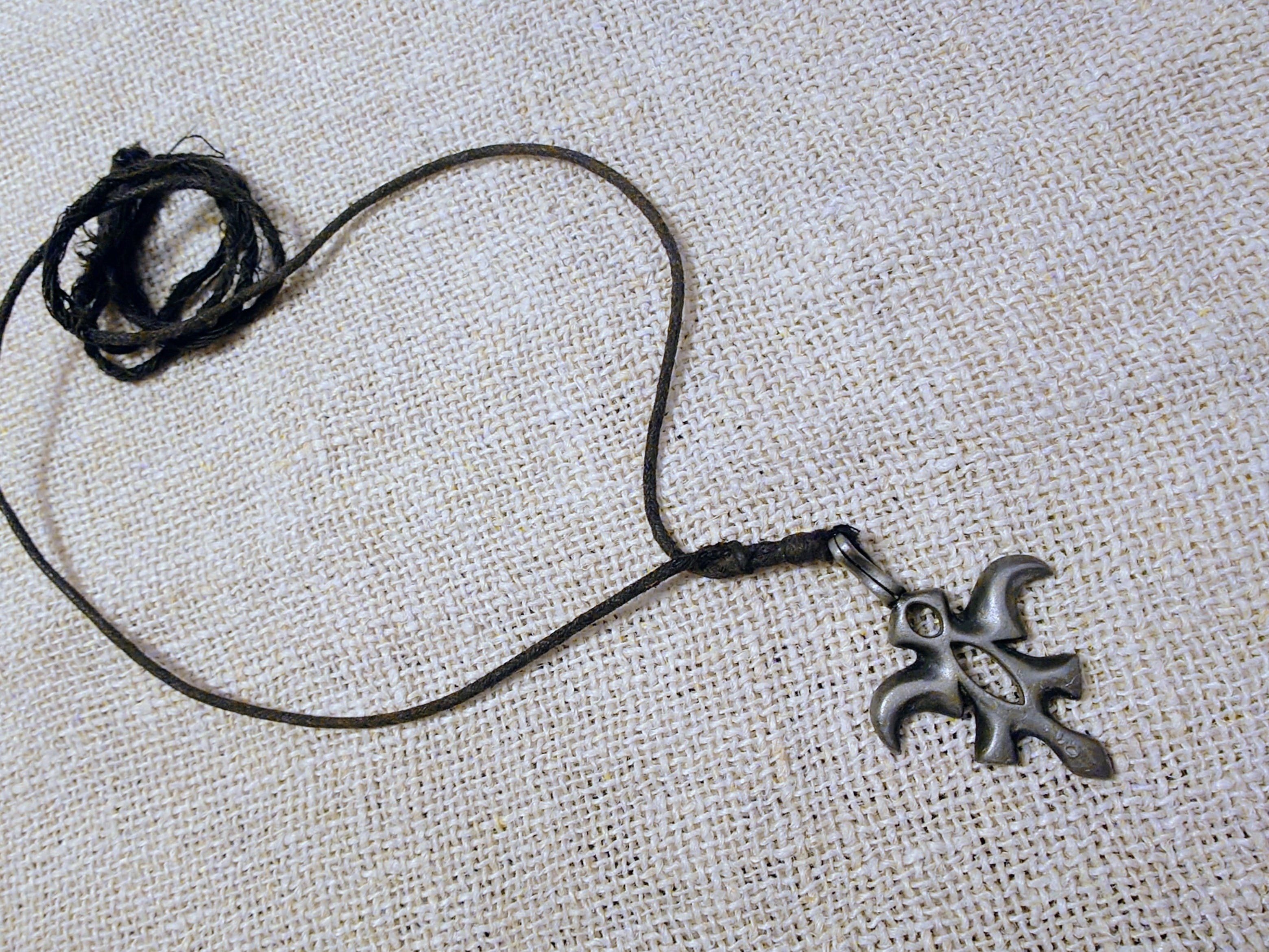 Vanha metallinen kaulakoru. Tinan tapaista materiaalia.