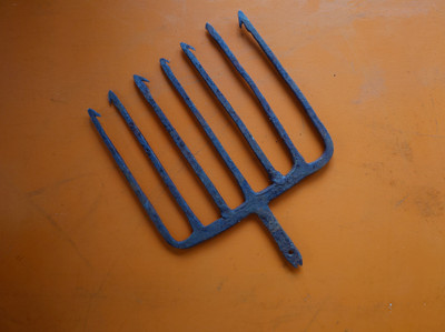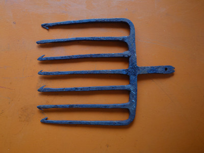 Atraimen teräosa 1900-luvun alkupuolelta. Puinen varsi puuttuu.