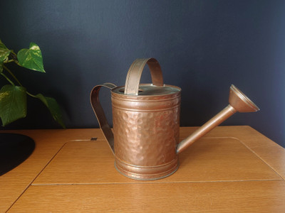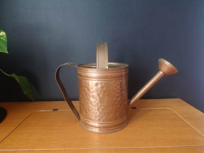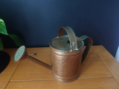 Pieni vanha vesikannu sisustukseen koristeeksi ja samalla se sopii myös käyttöön kukkien kasteluun.
