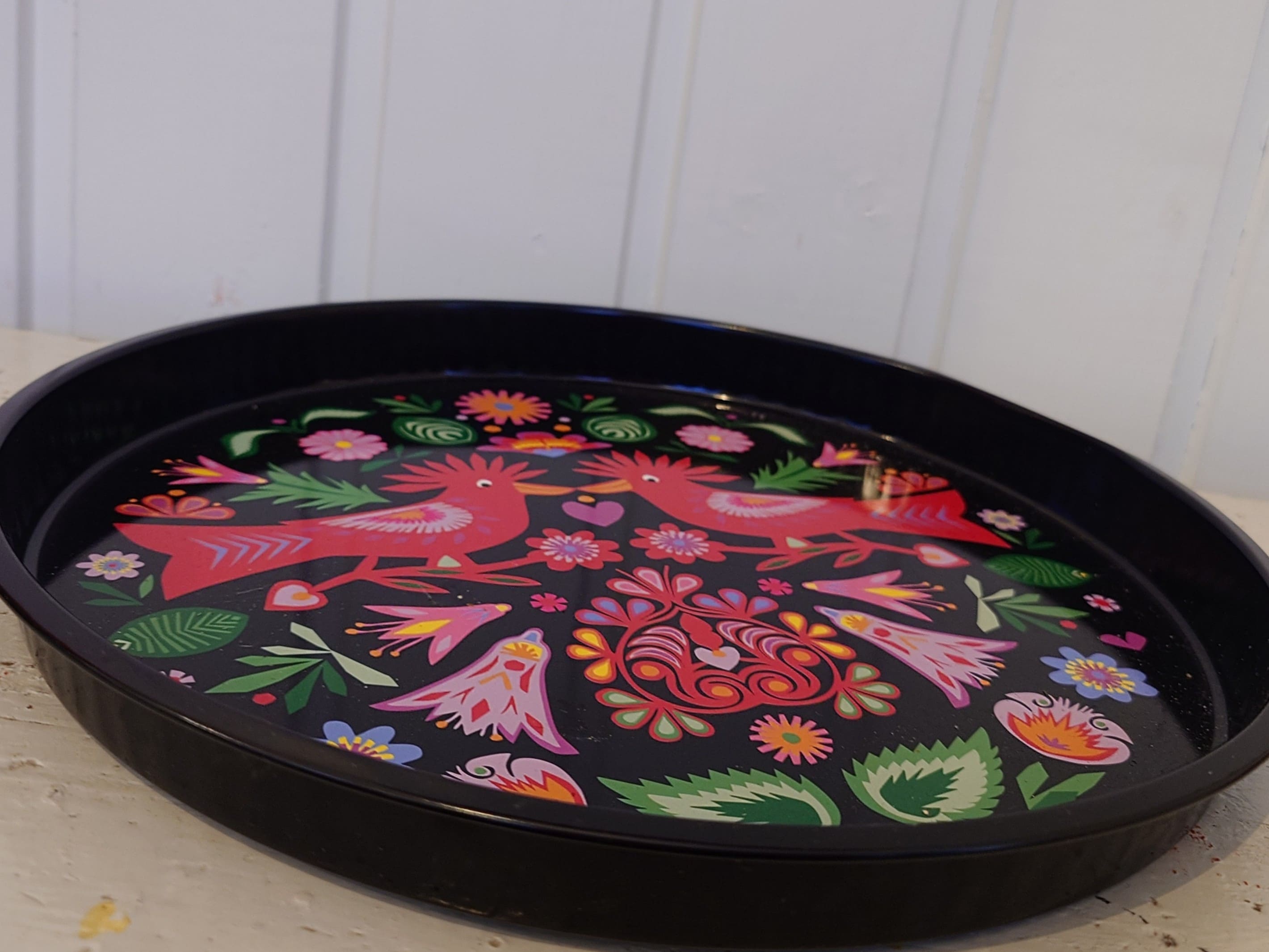 Värikäs vintage metallitarjotin