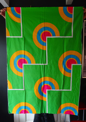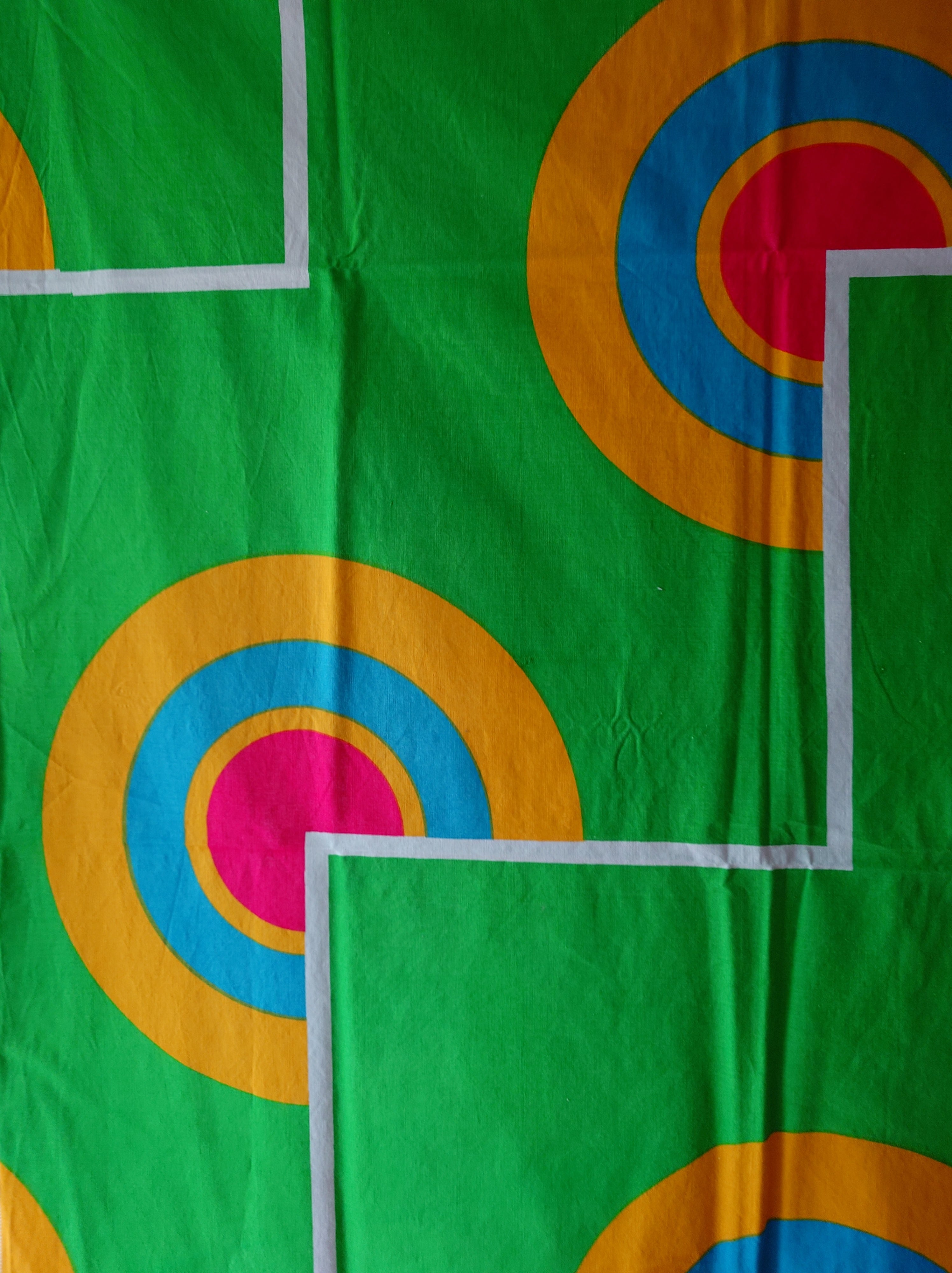 Vintage vihreä puuvillakangas, jossa on geometrisia kuvioita.