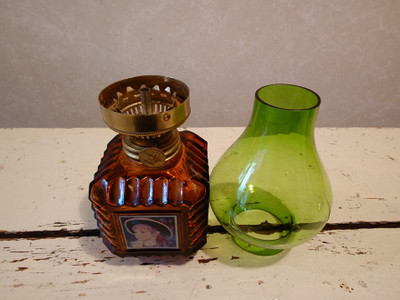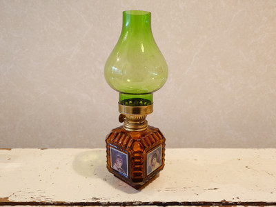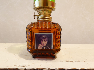 Alaosan väri on kaunis amber ja siinä on jokaisella sivulla tyttöaiheinen kuva. Kupu on vihreää lasia.