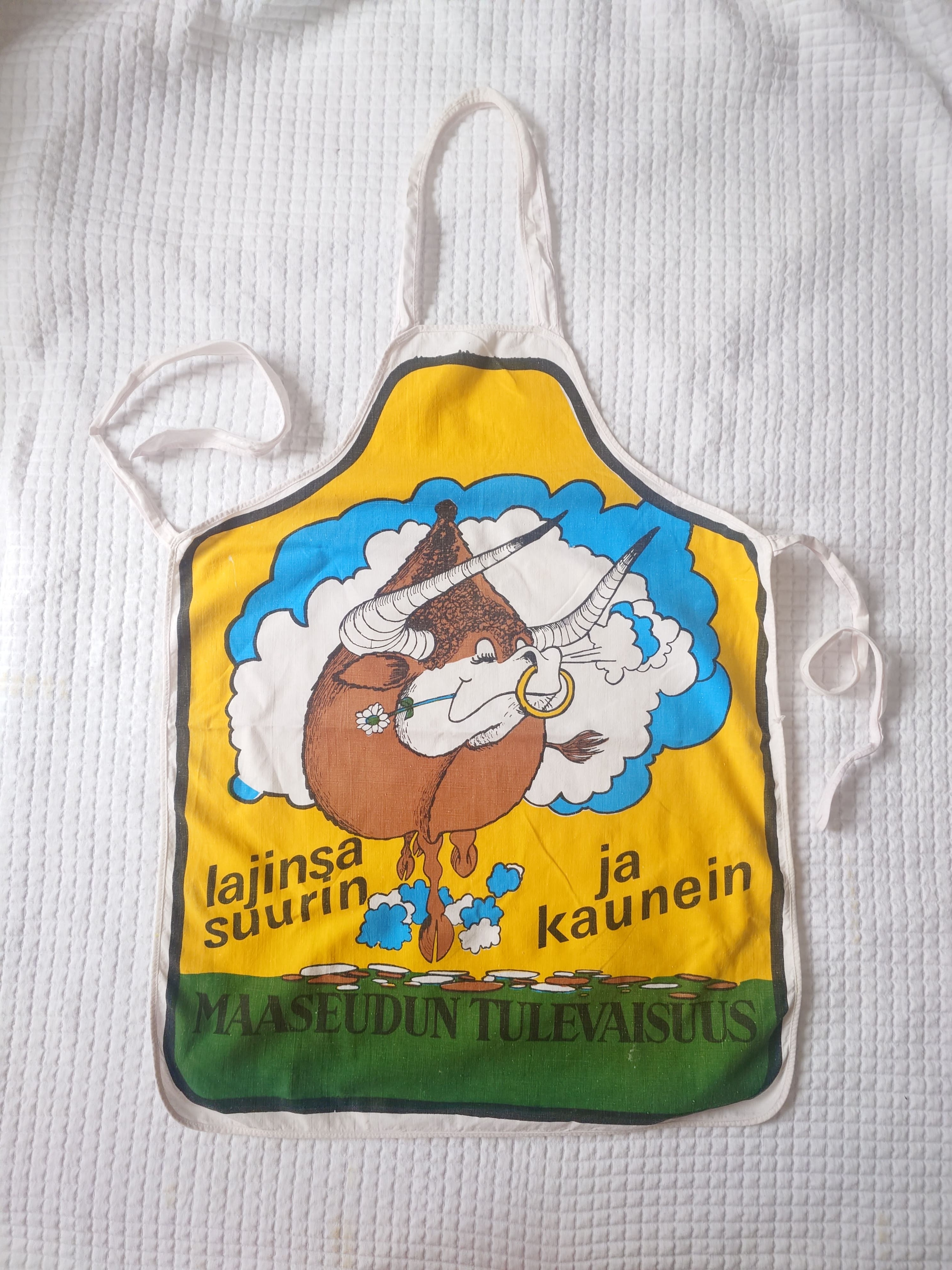 Ammuu! Maaseudun Tulevaisuus lehden hauska vanha essu 1970-1980 luvun tietämiltä. Puuvillaa.