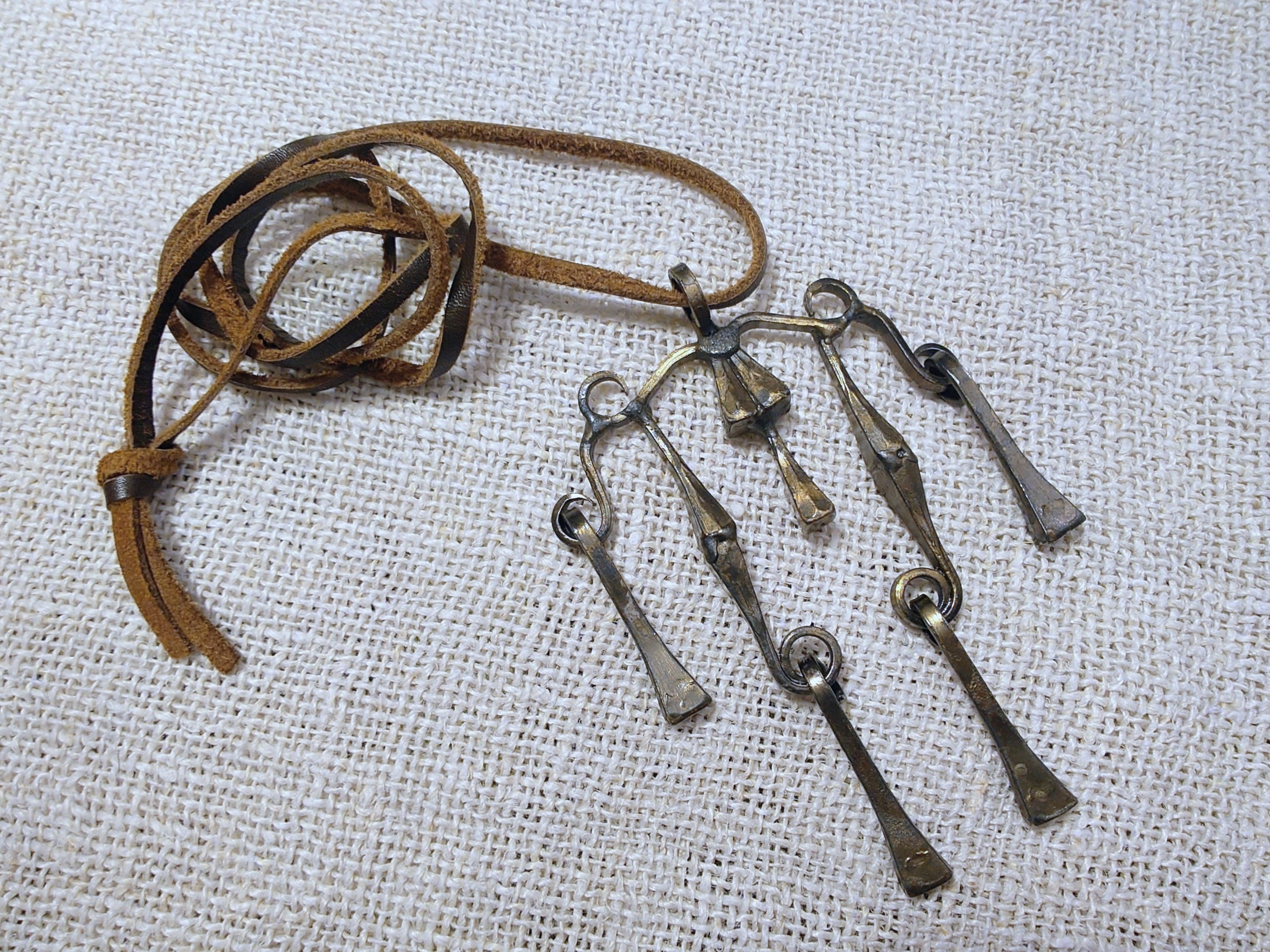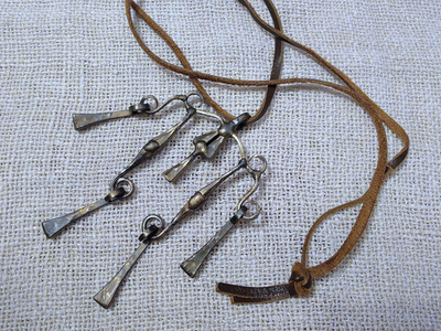Horseshoe nails riipus.  Vanha hevosenkengän nauloista käsin tehty kaulakoru. Arviolta 1960-1970 lukua.