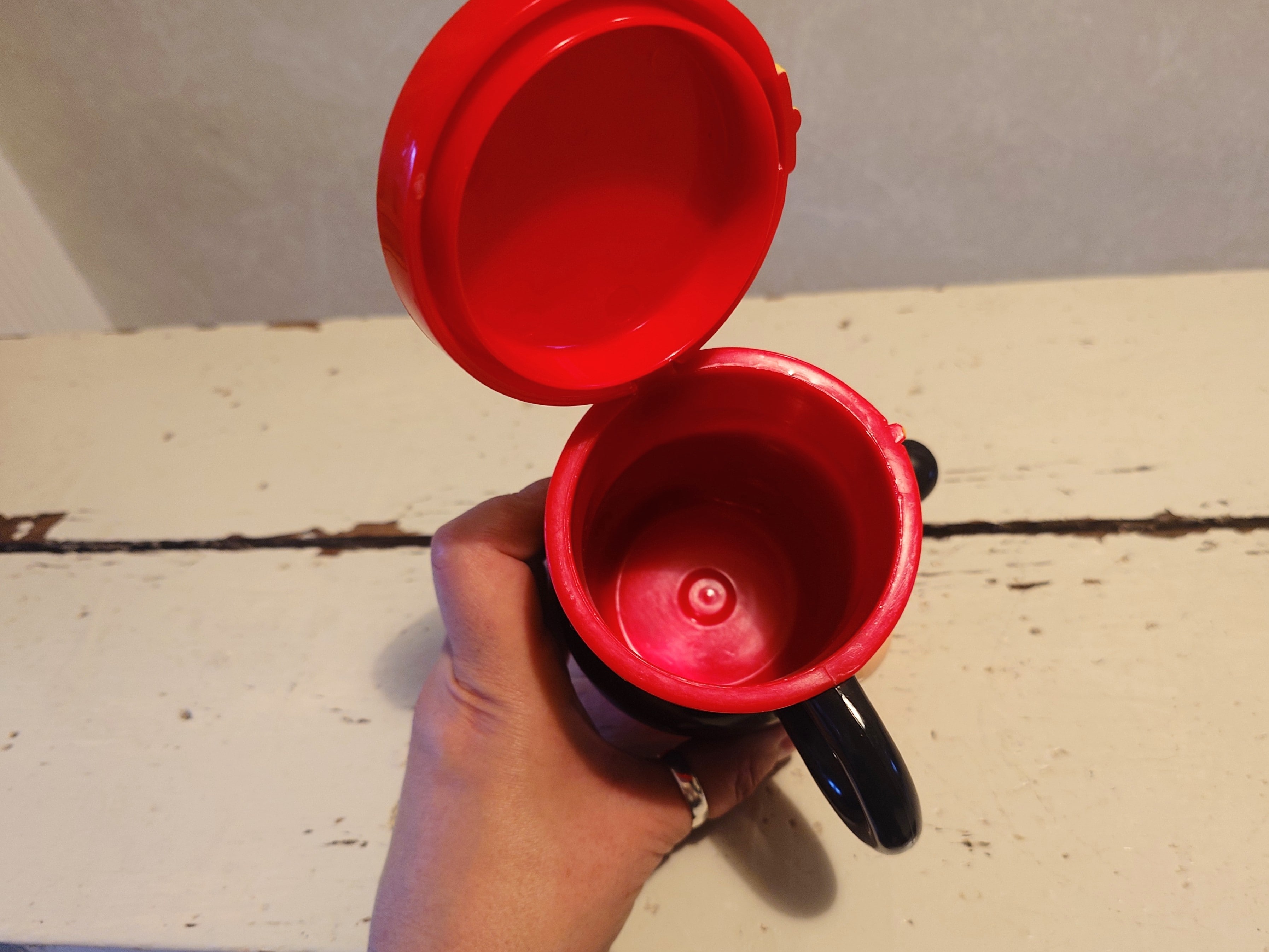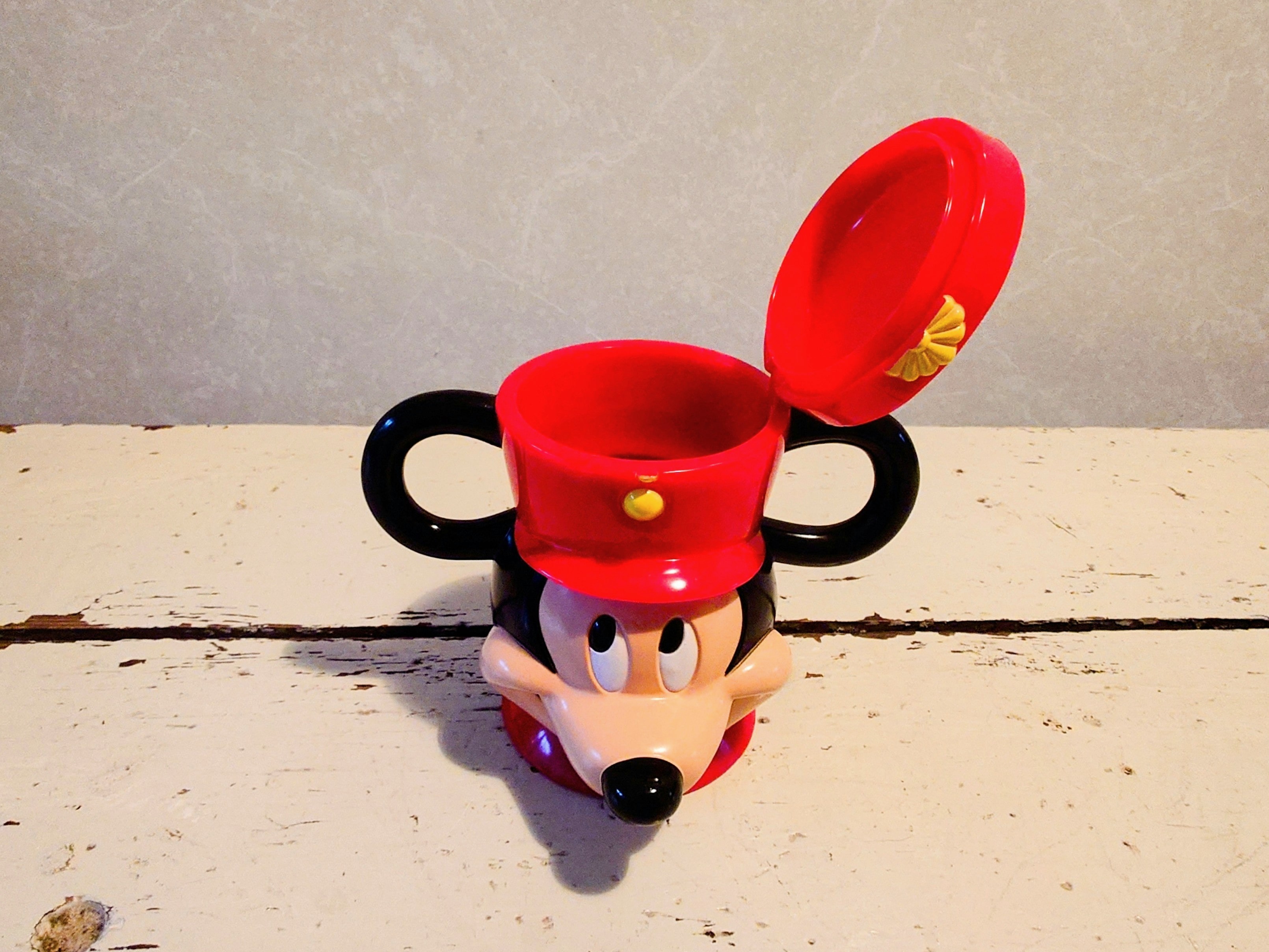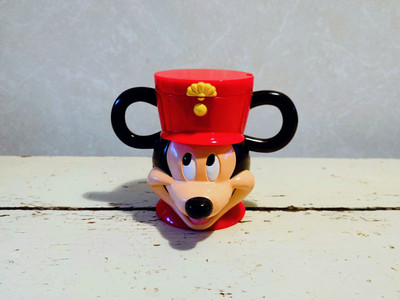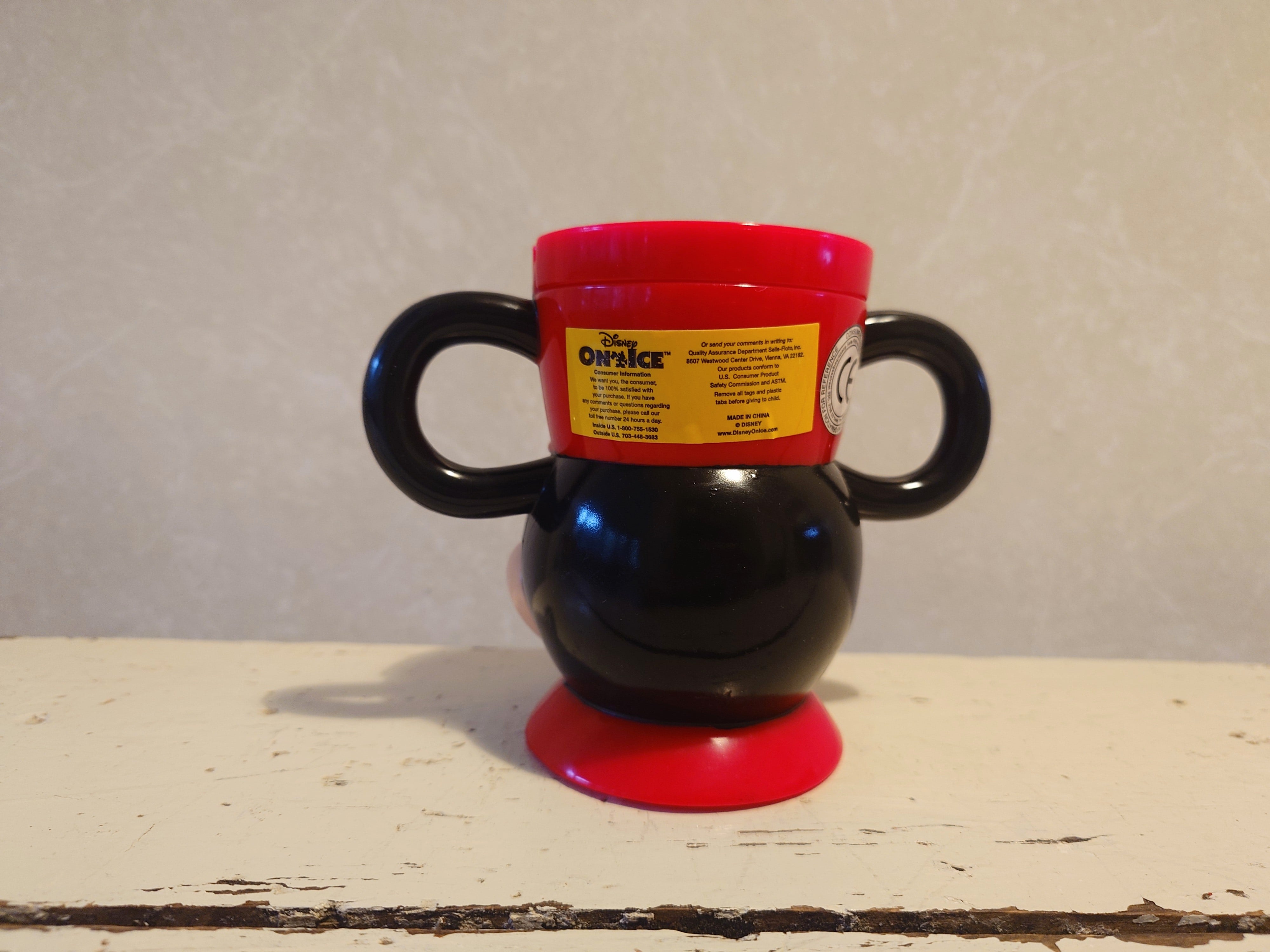 Disney On Ice Mickey Mouse kannellinen punainen figuuri 1980-luvulta. Muki, säilytysrasia, kunäpurkki.