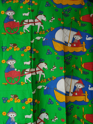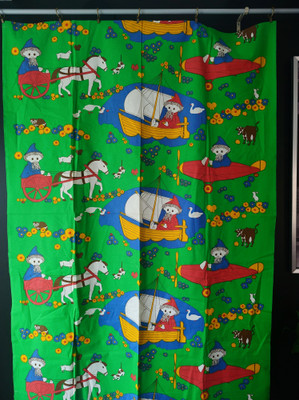 Ommeltu verhoksi tai voi käyttää lakanana tai kankaana. Puuvillaa.